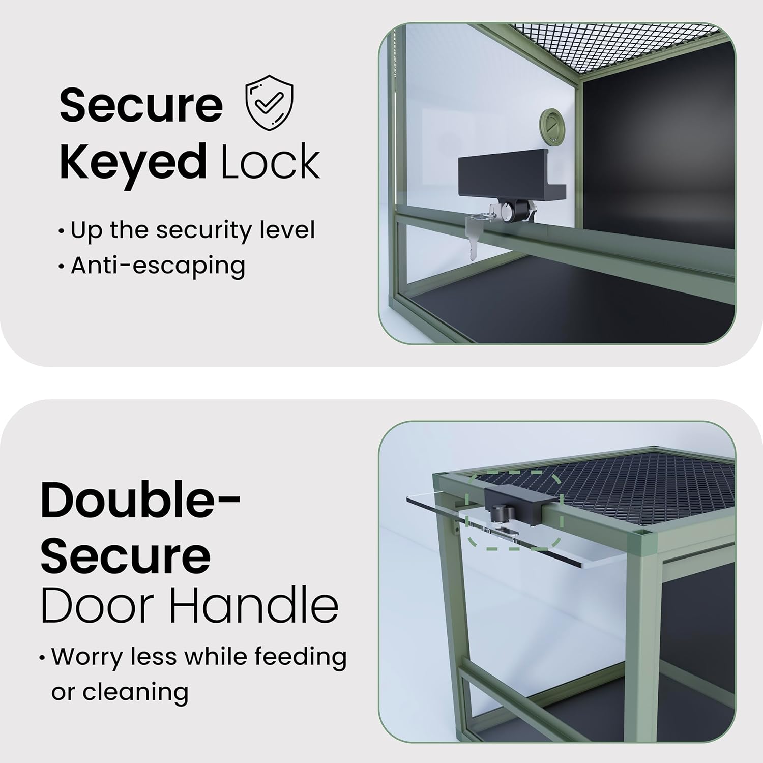 • 【Lock Included】A tempered glass door with a safety keyed lock to prevent escape and accidental opening by others. NO GAPS FOR ESCAPING with fully closed structure. Rigid tempered glass doors for extra safety.