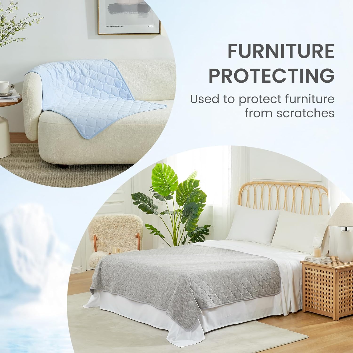 Cozy Bliss Leakproof Cooling Blanket for Large Dogs – Q-Max>0.4, Durable & Washable Dog Cooling Mat for Hot Weather, Soft Pet Throw & Couch Protector for Multiple Pets 60x80 Inch, Heather Silver Grey