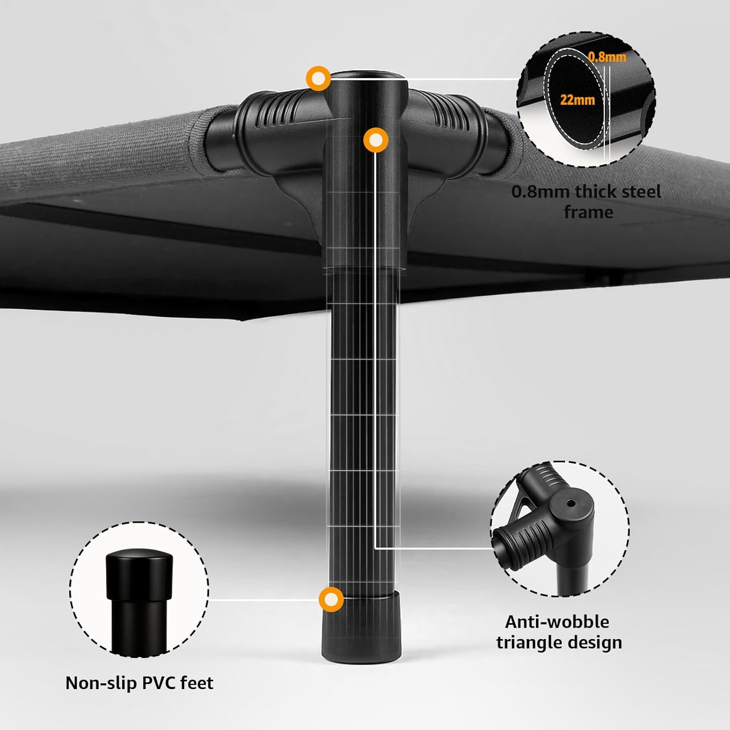 Sytopia Canvas Elevated Dog Bed, Durable Chew Proof Outdoor Raised Pet Cot for Large Dogs, Waterproof, Breathable, Portable, Washable, Easy Assembly, Sturdy Frame for Camping & Travel, Dark Grey
