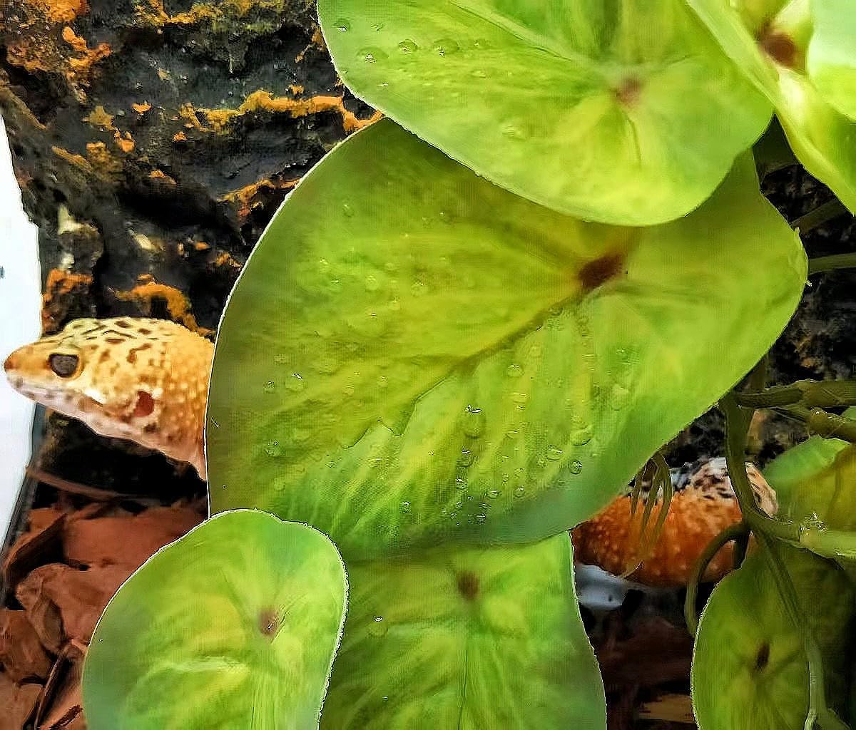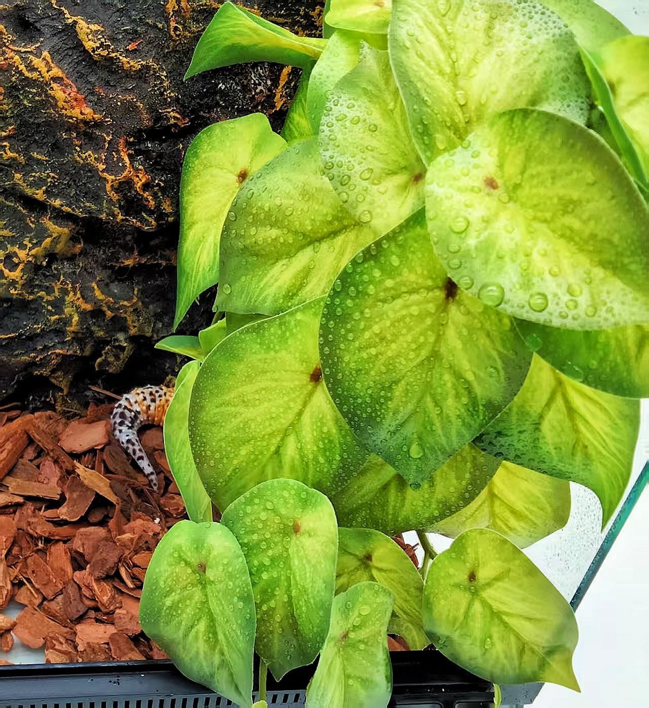 • Natural Habitat Decor:Lots of lifelike plants create a natural habitat for reptiles and amphibians, promoting a safe and relaxed environment while optimizing space utilization. The lush leaves not only serve as decorative landscaping but also provide hiding spots and climbing opportunities.