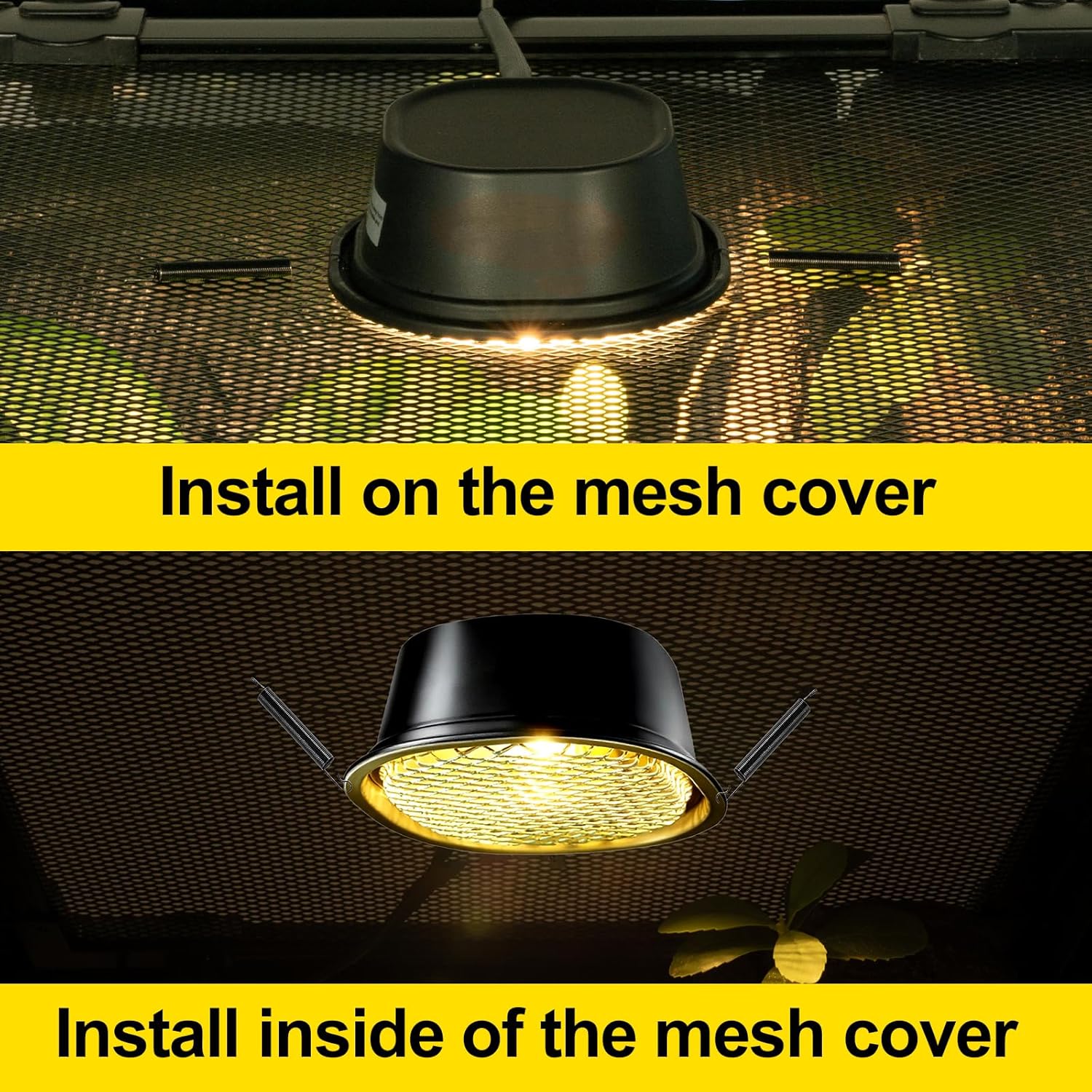 • Enhanced Safety Design: The basking lampshade integrates a protective mesh barrier, preventing reptiles from direct heat source contact. Eliminates the risk of potential accidents or injuries