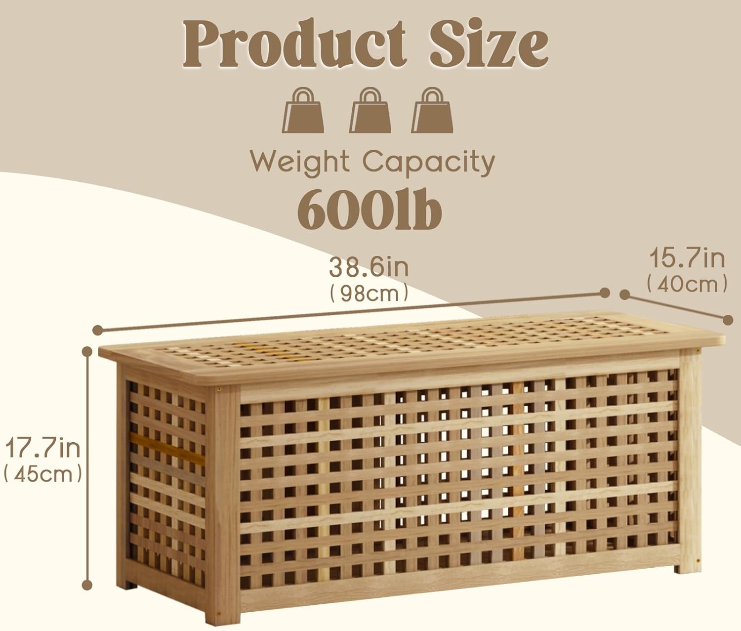 • Holds Everything You Need:At 15.7" D x 38.6" W x 17.7" H (40 x 98 x 45 cm), this bench with storage offers a whopping 40 gallons (150L) of storage space. Toss in blankets, books, shoes, toys, or even bathroom essentialsโ€”this storage bench has room for it all!