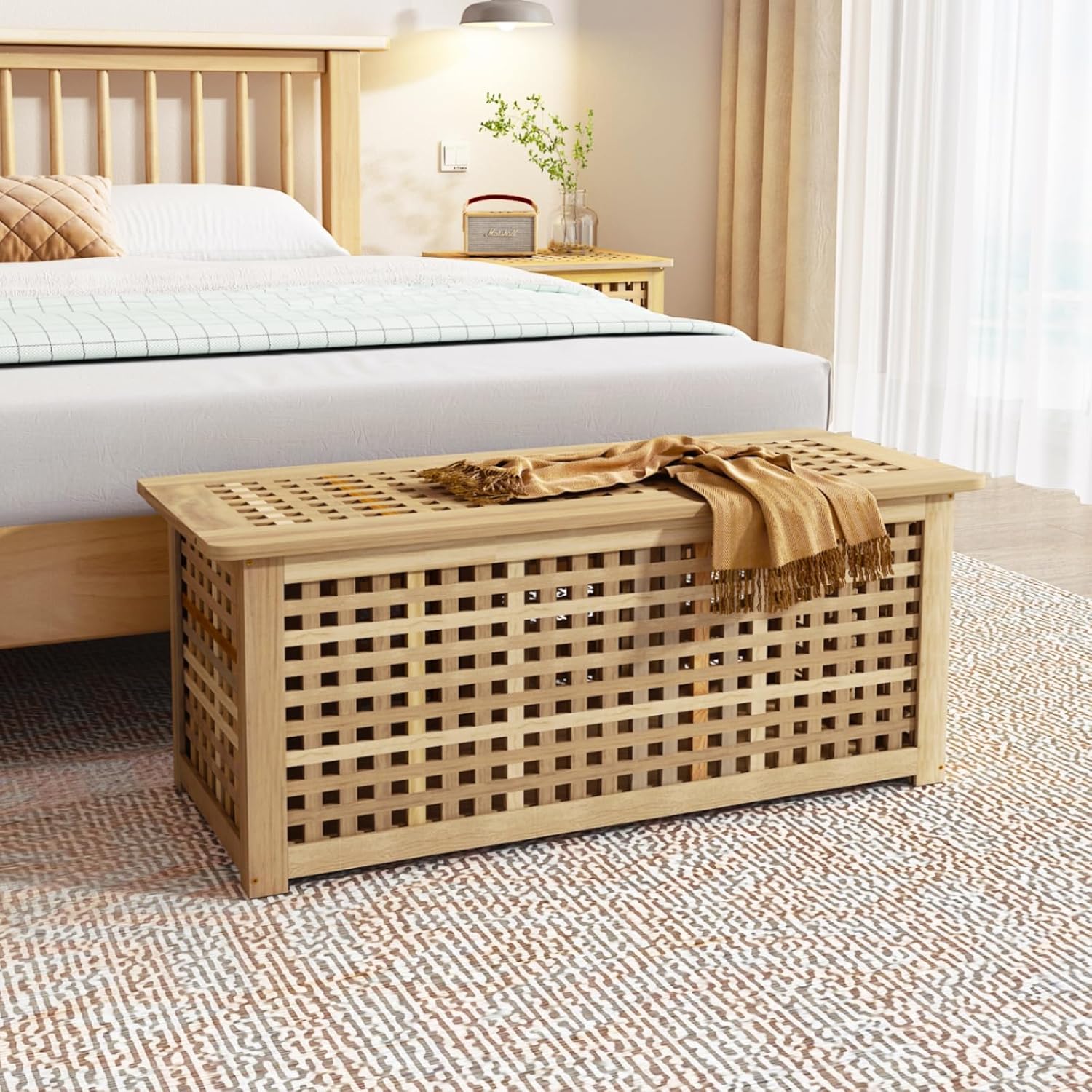 • Fits Any Room, Matches Any Style:With its classic grid design and natural acacia wood finish, this bench with storage blends seamlessly into any home decor. Whether you need a storage bench for your entryway, bedroom, living room, or bathroom, itโ€™s as stylish as it is functional.