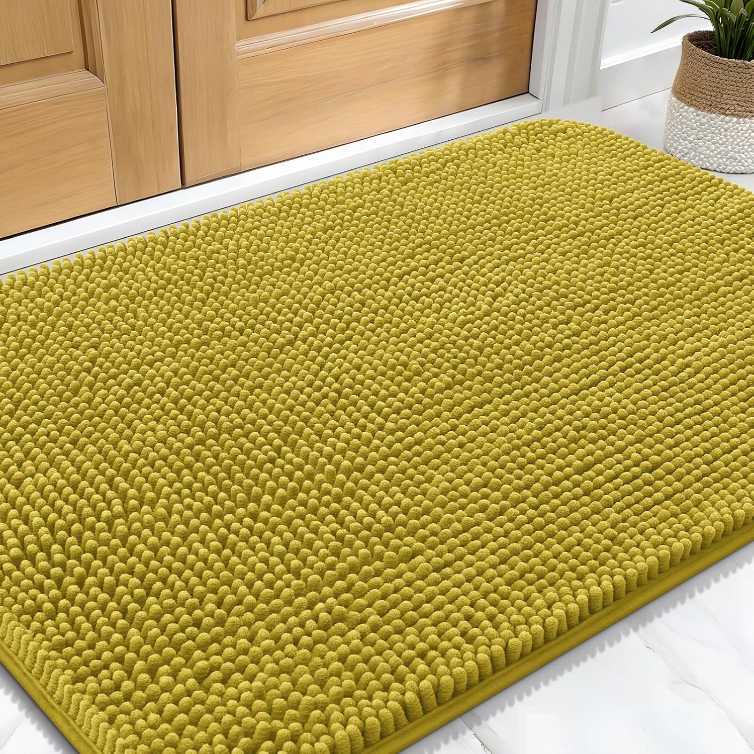 OLANLY Dog Door Mat for Muddy Paws 30x20, Absorbs Moisture and Dirt, Absorbent Non-Slip Washable Doormat, Quick Dry Chenille Mud Mat, Entry Indoor Entryway Carpet for Inside Floor, Mustard Yellow
