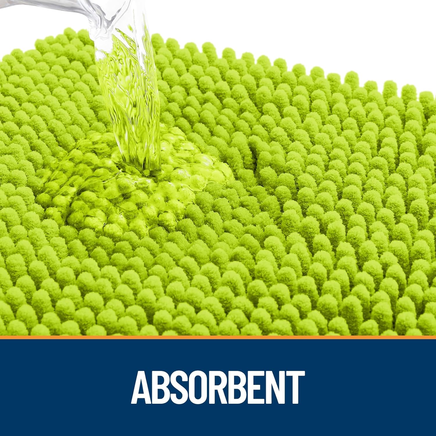 OLANLY Dog Door Mat for Muddy Paws 30x20, Absorbs Moisture and Dirt, Absorbent Non-Slip Washable Doormat, Quick Dry Chenille Mud Mat, Entry Indoor Entryway Carpet for Inside Floor, Bright Green