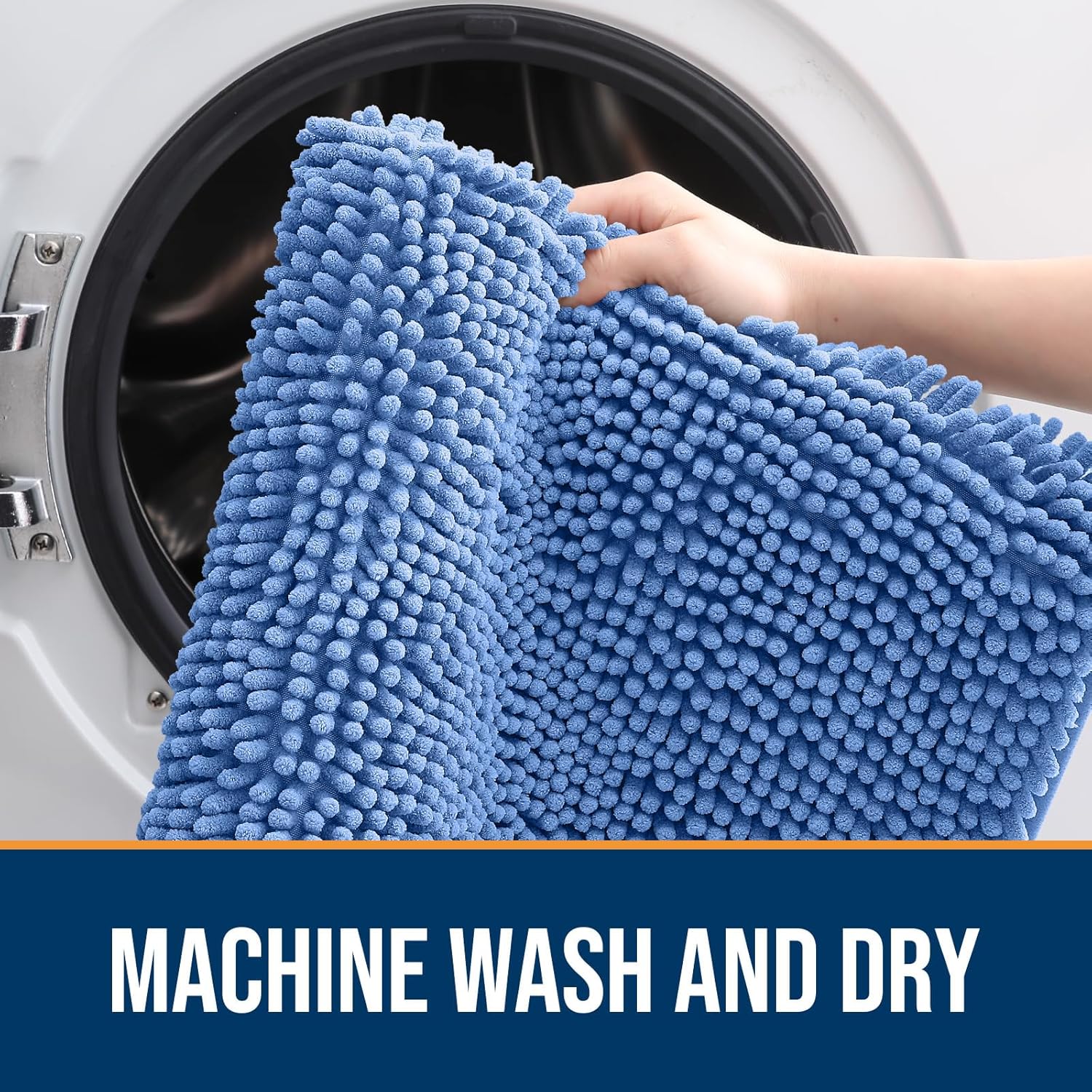 OLANLY Dog Door Mat for Muddy Paws 30x20, Absorbs Moisture and Dirt, Absorbent Non-Slip Washable Doormat, Quick Dry Chenille Mud Mat, Entry Indoor Entryway Carpet for Inside Floor, Cornflower Blue