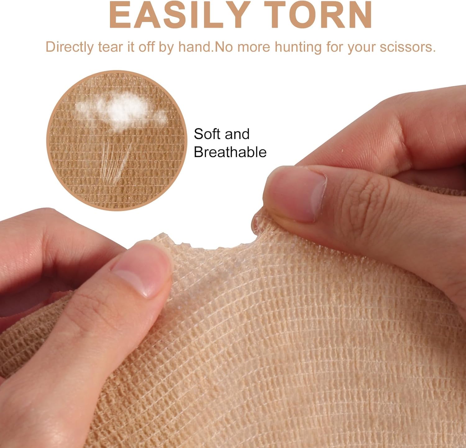 • 【No Residue & Effortless Application】Unlike ordinary tapes, this self-adhesive bandage sticks only to itself, not skin or hair. Easily tear b hand without scissors—perfect for quick fixes during sports, workouts, or pet emergencies. No pins or clips needed!
