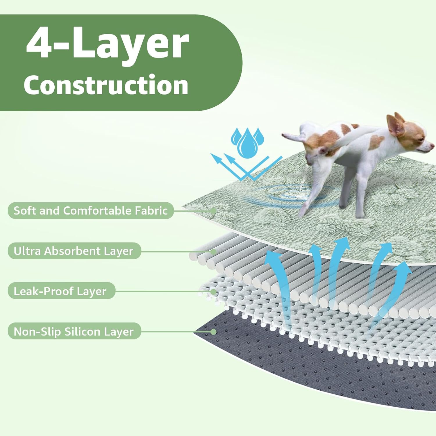 • Super Absorbent & Leak-Proof: With a soft and absorbent fabric top layer, washable puppy pads wick moisture away from the surface without the puddles stay on top of it. Keeps your floors dry and clean. The non-slip backing ensures the pad stays in place for added stability and safety