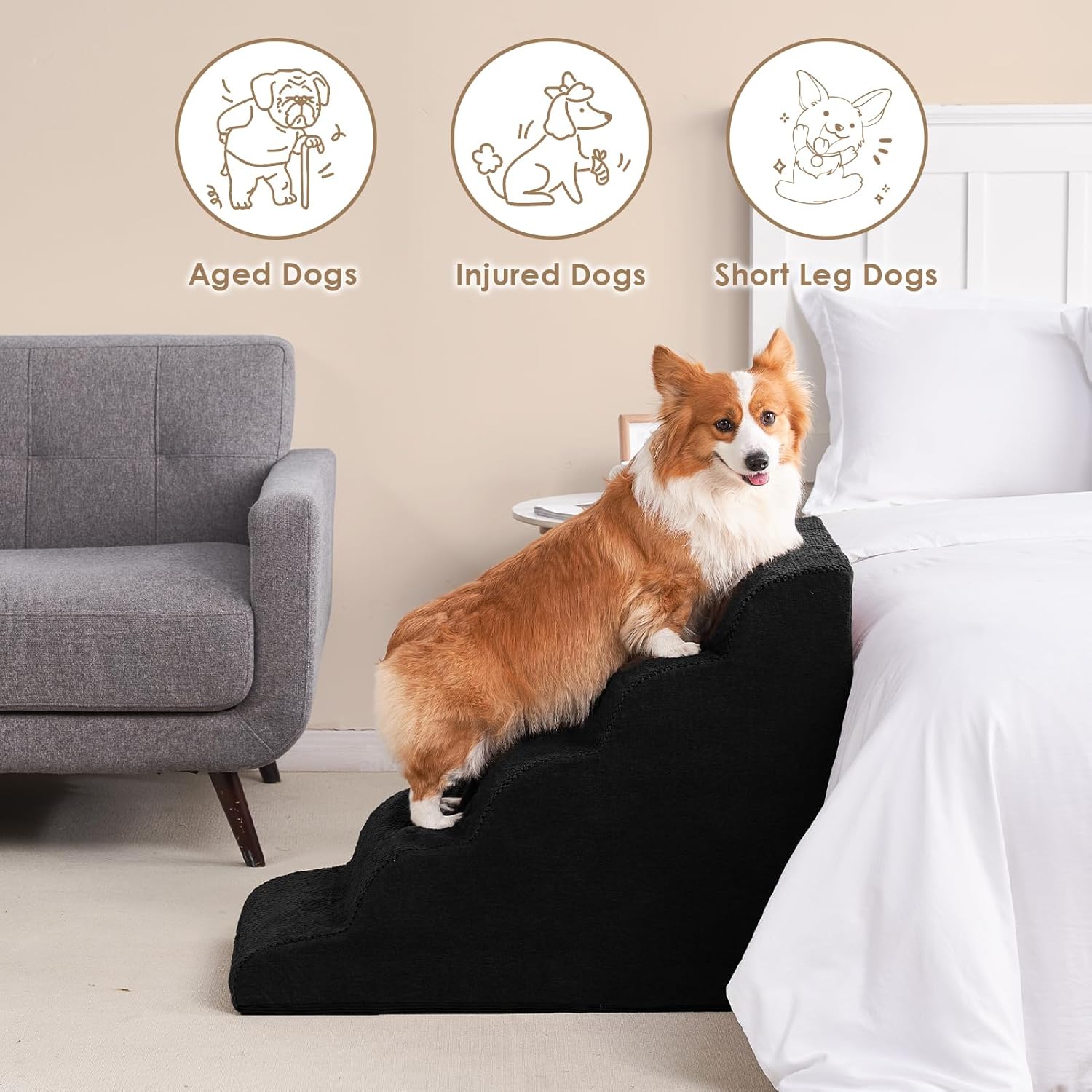 • COMFORTABLE PET STAIRS - This foam dog stair is designed directly against the edge of a bed, sofa or other furniture, so your pet can climb up and down comfortably.