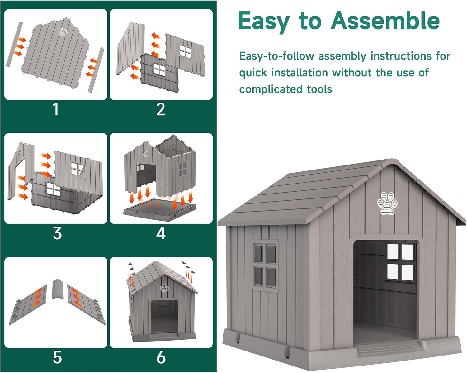 • EASY TO INSTALL AND CLEAN: Comes with all the accessories, follow the step-by-step instructions and an adult can assemble the dog house in less than 20 minutes. Simple to clean, just remove the roof for easy access to the inside of the dog house.