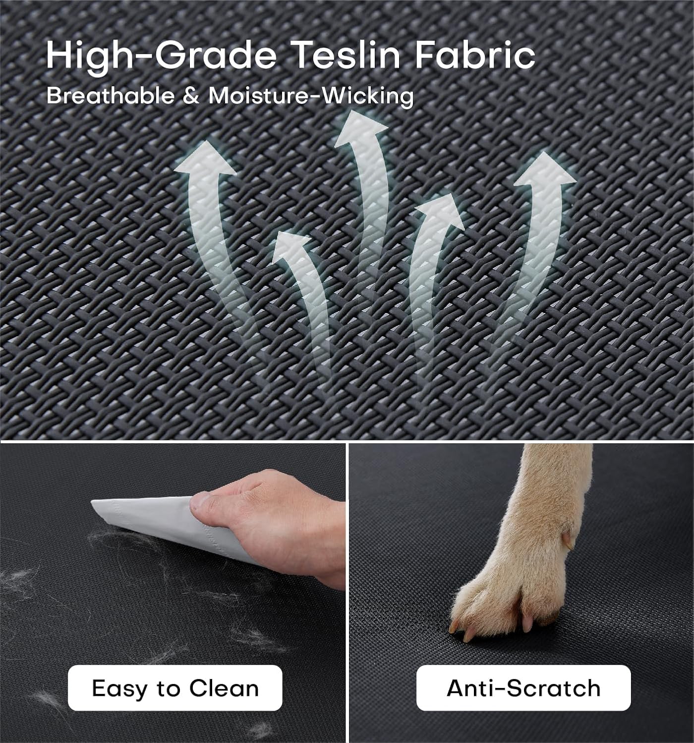 • Easy to Clean & Maintain - The heavy-duty Teslin mesh fabric repels dirt, moisture, and odors. Just hose it down or wipe it clean. This portable dog bed is made for real-life messes—from muddy paws to fur shedding—and dries quickly for the next adventure