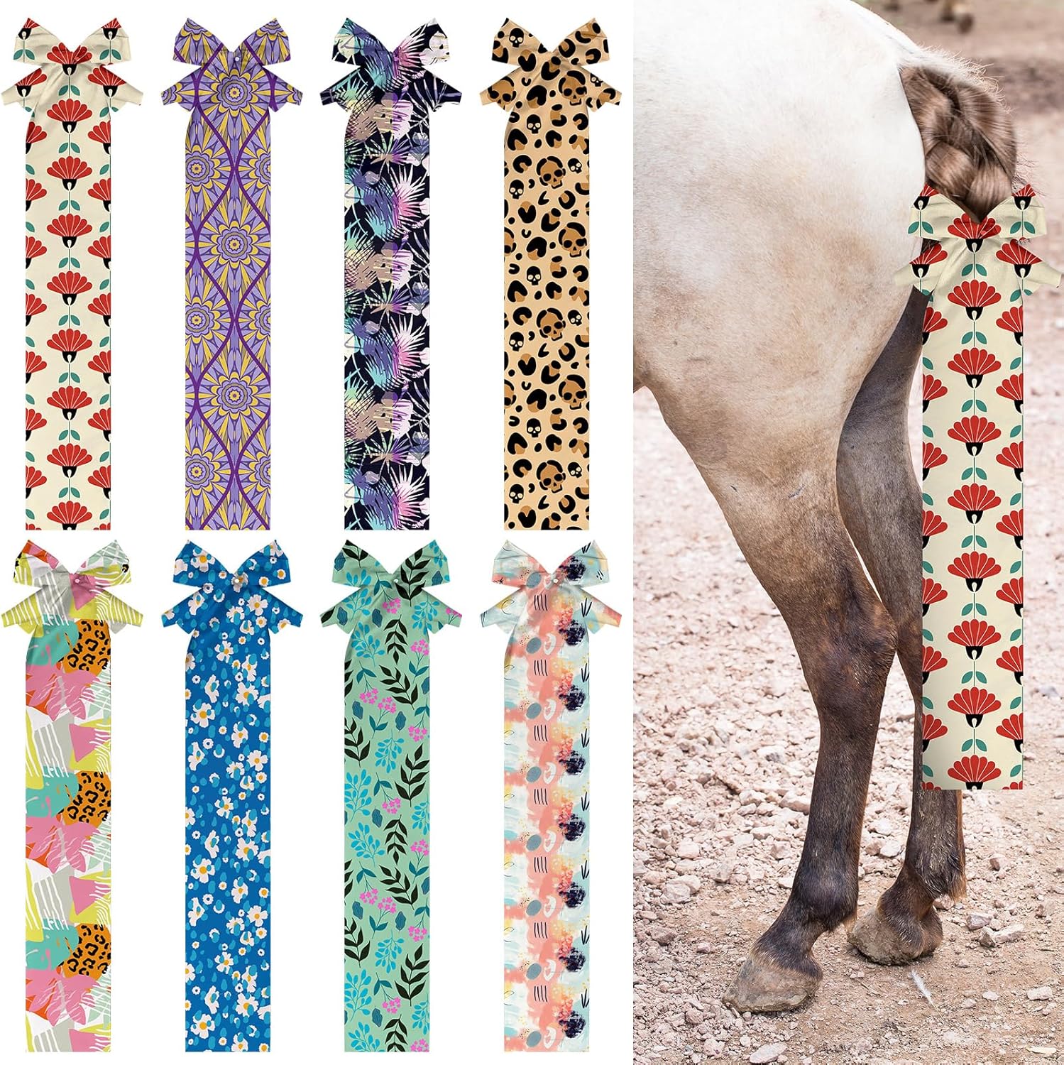Eccliy 8 Pcs Horse Tail Bag Breathable Guard Stretchy 22" Slip on Horse Tail Wrap 2 Strand Closure Straps Grooming Supplies to Keep from Dirt Breakage Rubbing 8 Designs