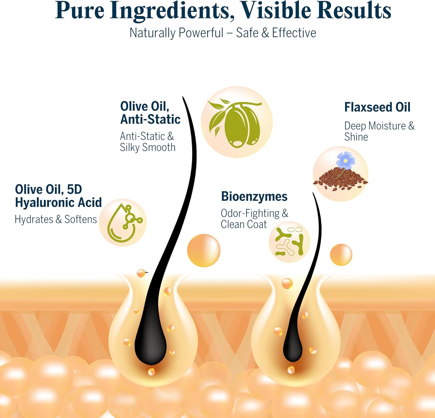 • Deodorizing & Anti-Static Leave-In Spray: More than just a pet detangler, our leave-in grooming spray also works as a dog deodorizing spray & cat perfume, neutralizing odors with bioenzymes while preventing static & frizz in dry weather.