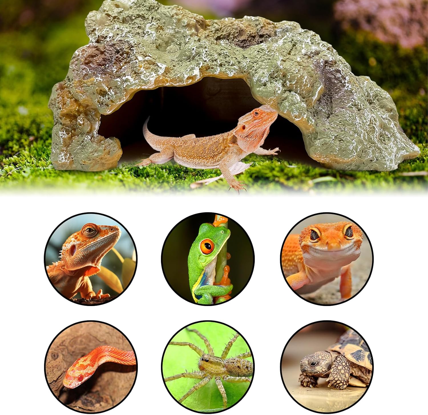 • Multiple Uses: This reptile hide cave is not only a great habitat but also a perfect decoration. This realistic cave will make your aquarium look more interesting, attract your pet's attention, and provide visual enjoyment for both you and your pet. Great for bearded dragons, lizards, snakes, geckos, turtles, spiders, frogs, fish, and other small reptiles