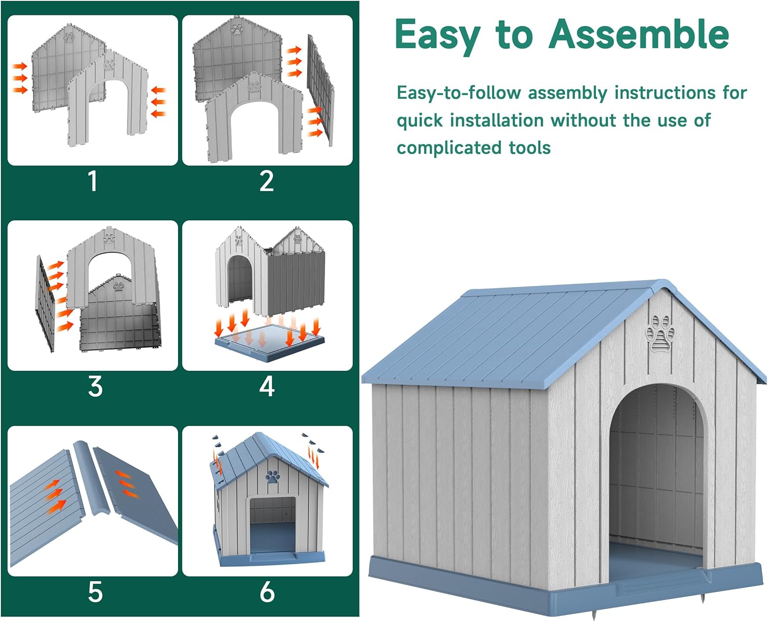 DRATO Indoor Outdoor Waterproof Dog House,PP Material,Puppy Shelter with Air Vents and Elevated Floor,Sturdy Dog Kennel for Small to Large Sized Dogs, Easy to Assemble (Blue, 38.62×36.26×38.07 Inches)