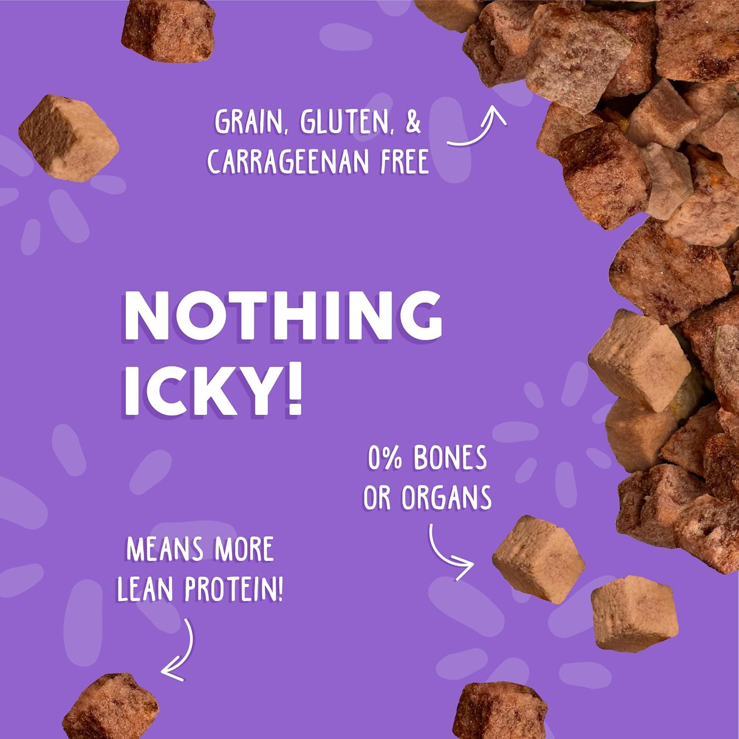 • All natural. Free of grains, gluten, carrageenan, wheat, corn, and soy. No artificial colors, flavors, preservatives, or animal by products
