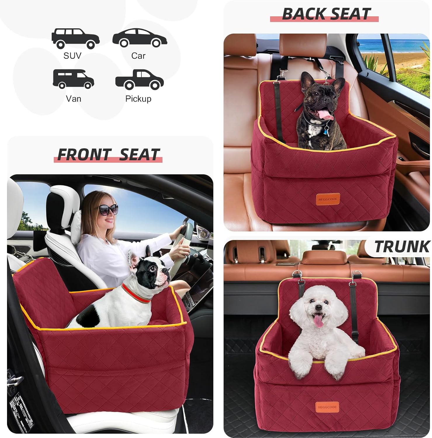 Dog Car Seat for Small Medium Dogs, Memory Foam Puppy Dog Booster Seat with Thick Cushion for Dogs Under 35lbs, Detachable Washable Pet Car Seat Travel Bed with Storage Pockets,2 Safety Belts