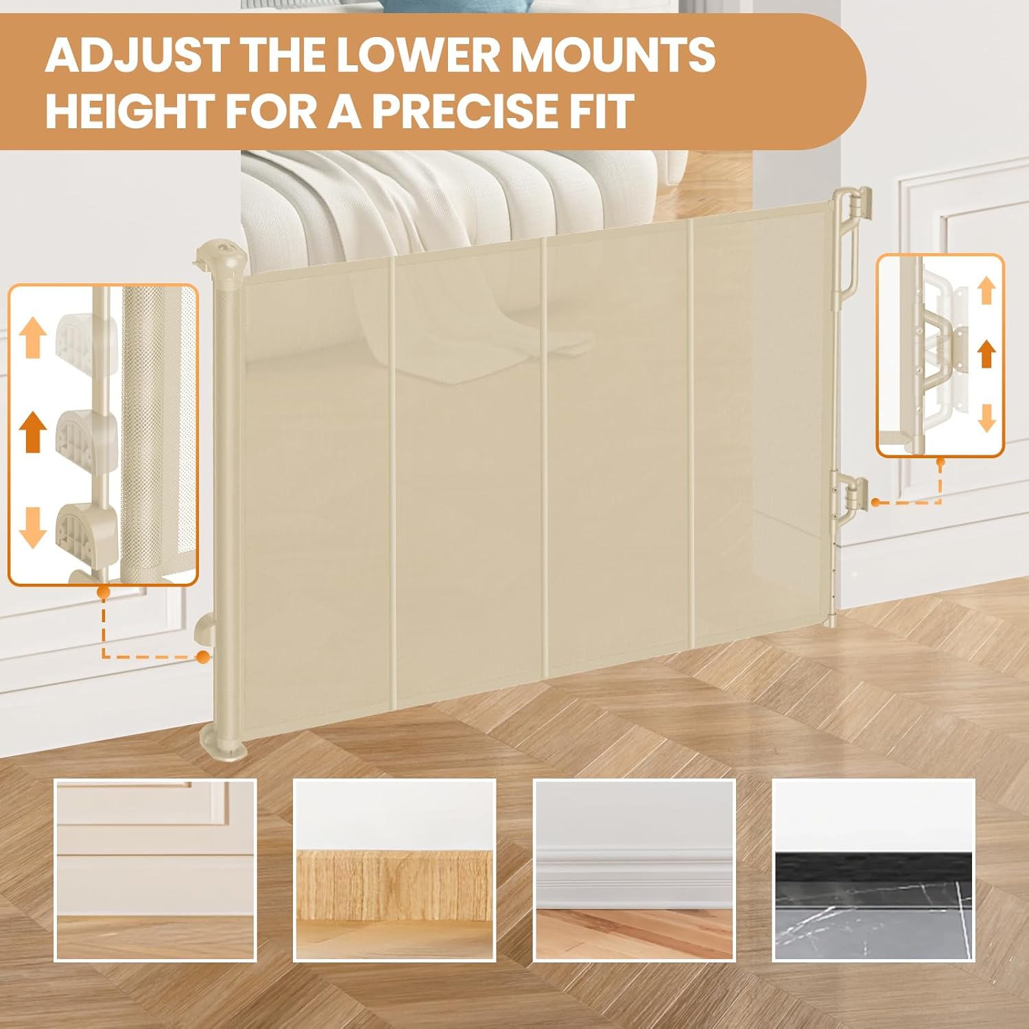 • 【Flexible Size】- Retractable baby gates extend to 55" wide and is 33.5" tall which can be adjusted to fit your openings according to your needs. Mesh can be completely retracted away when not in use.