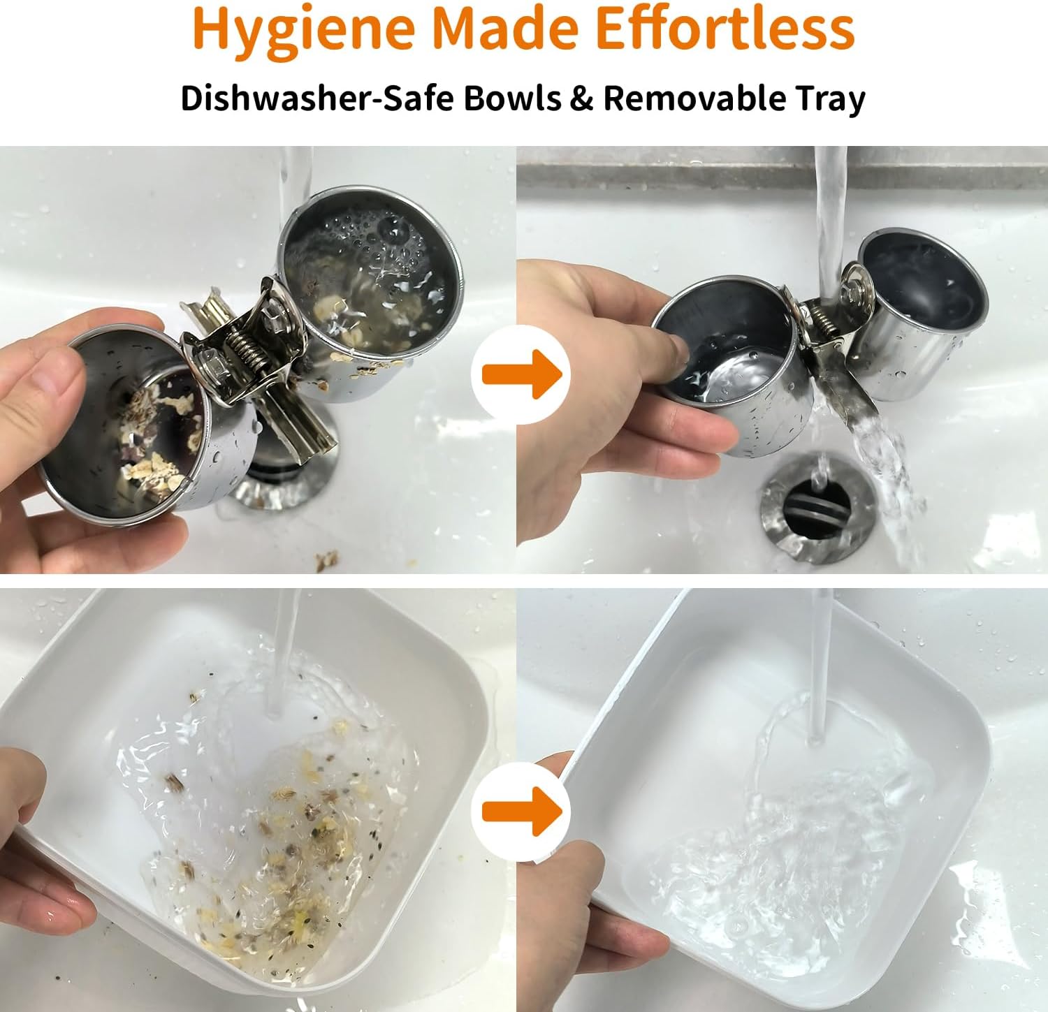 • Feeding + Training? Yep, Weโ€™ve Got Both! - This parrot stand doubles as a versatile bird stand, blending training, perching, and feeding seamlessly. The detachable stainless steel double bowls (clip-on design!) let you serve food and water separatelyโ€”ideal for bird training sessions or daily meals.