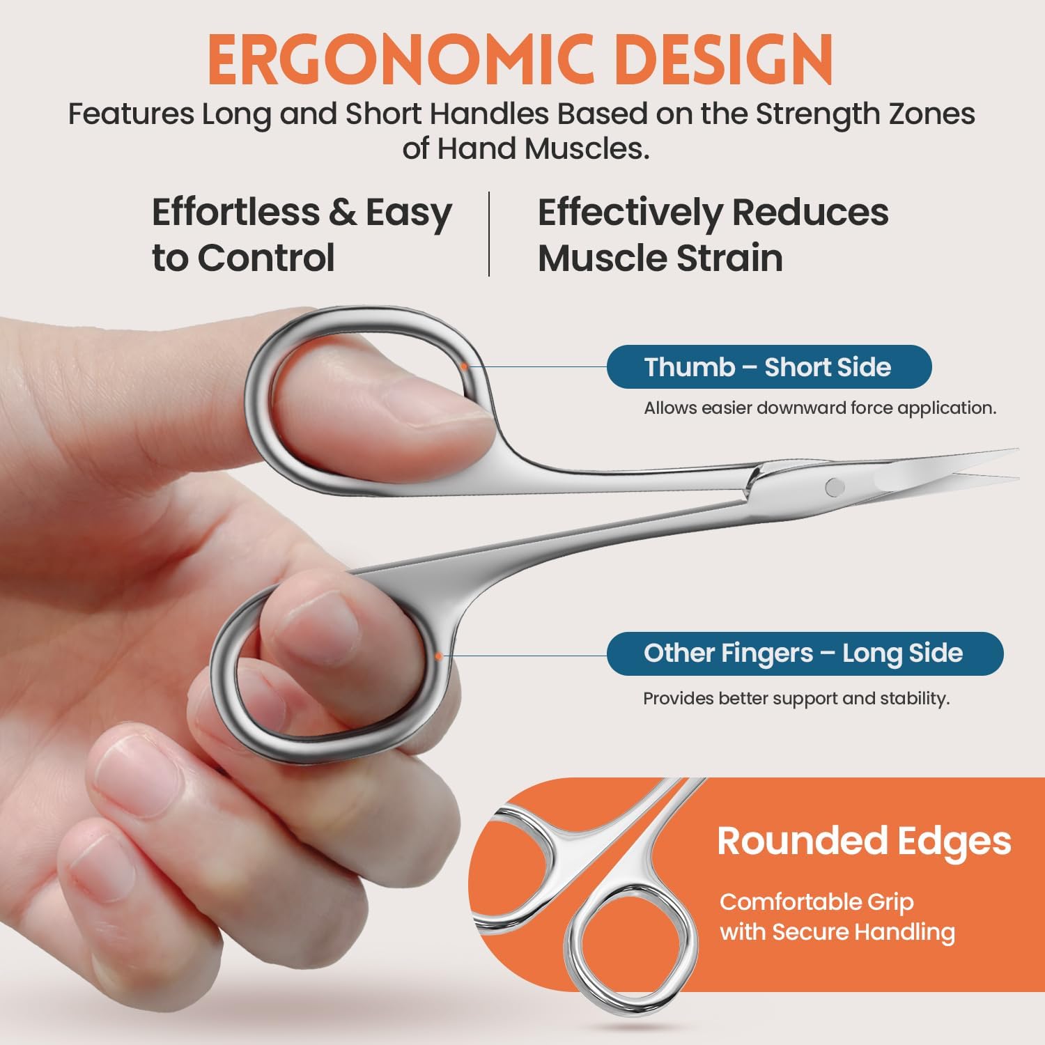 • Multi-Purpose Small Scissors: Perfect for manicures, pedicures, and detailed grooming—like trimming cuticles, beards, eyebrows, and eyelashes. Compact and travel-friendly with a protective tip cover for safe storage