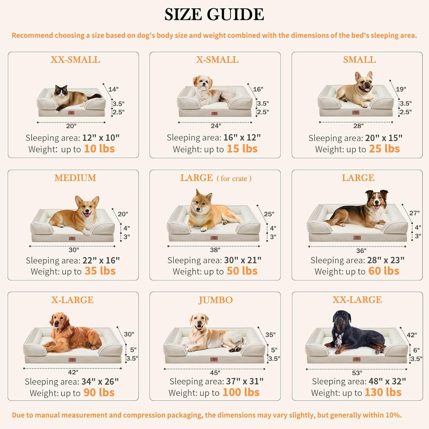 Comfort Expression Large Dog Beds Waterproof Orthopedic Foam Dog Sofa Beds Comfy Pet Bed with Washable Removable Cover & Non-Slip Bottom(Large,Beige)
