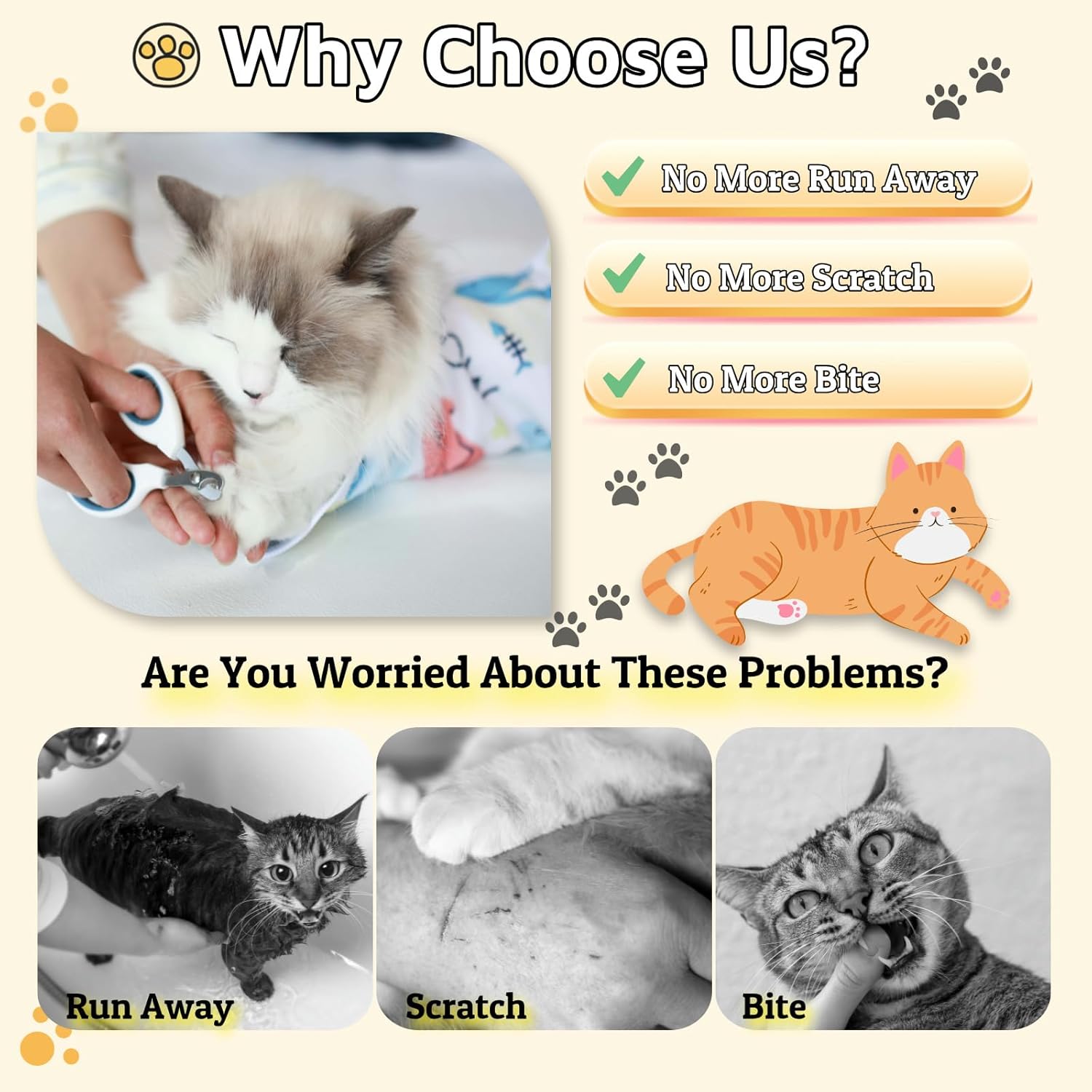 • 【Multifunctional Cat Wrap】Whether you need to trim nails, clean ears, brush teeth or administer medication, administering injections, and more, our cat swaddle wrap can meet your cat care needs. Its suitable size and lightweight design make it the best choice for daily cat care.