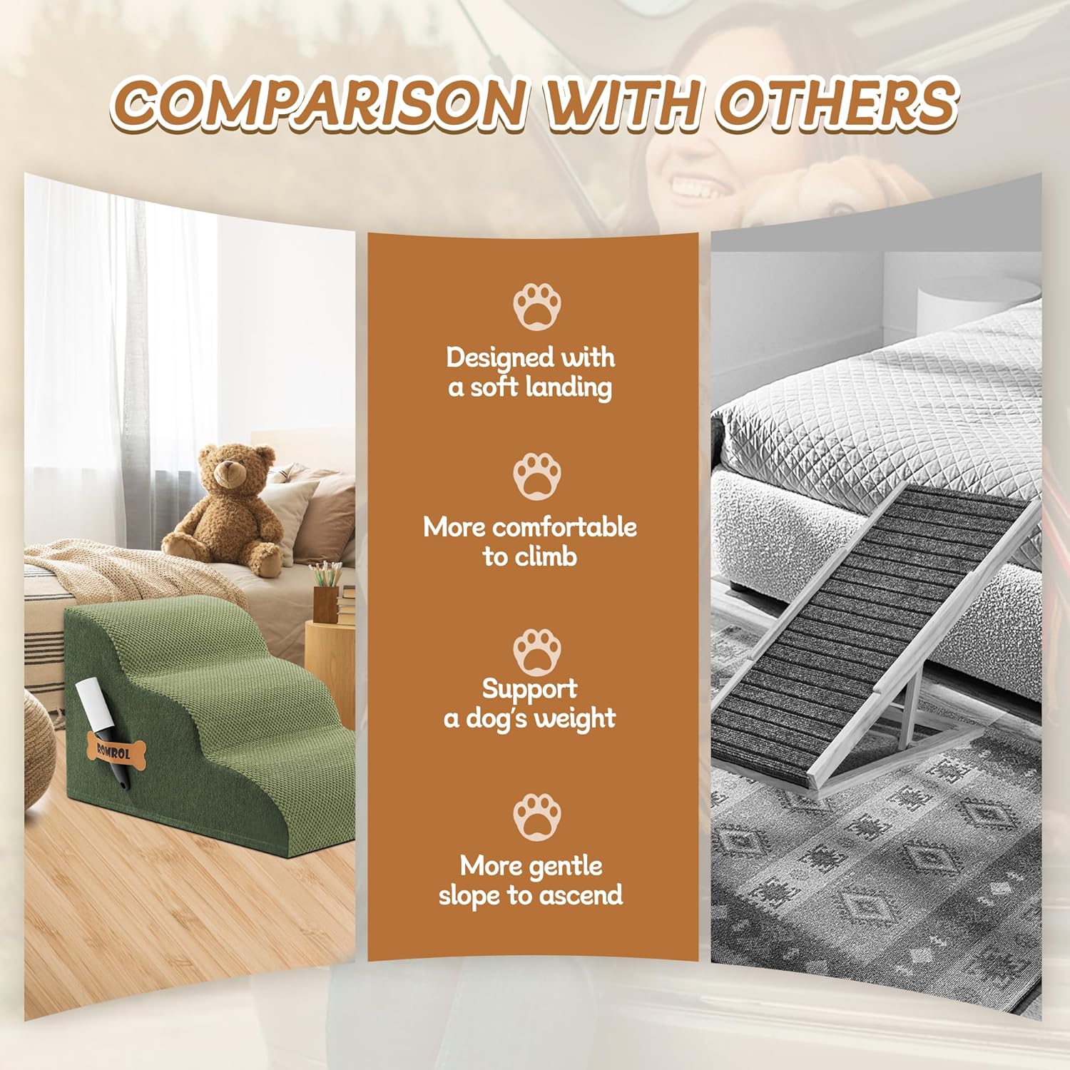 • 33D REBOUND HIGH-DENSITY FOAM: Our 33D foam delivers 63% faster rebound vs standard foam with enhanced weight capacity. Perfect for puppies, senior dogs, and pets recovering from surgery to access beds/couches safely. Dual-purpose as cat stairs for multi-pet households