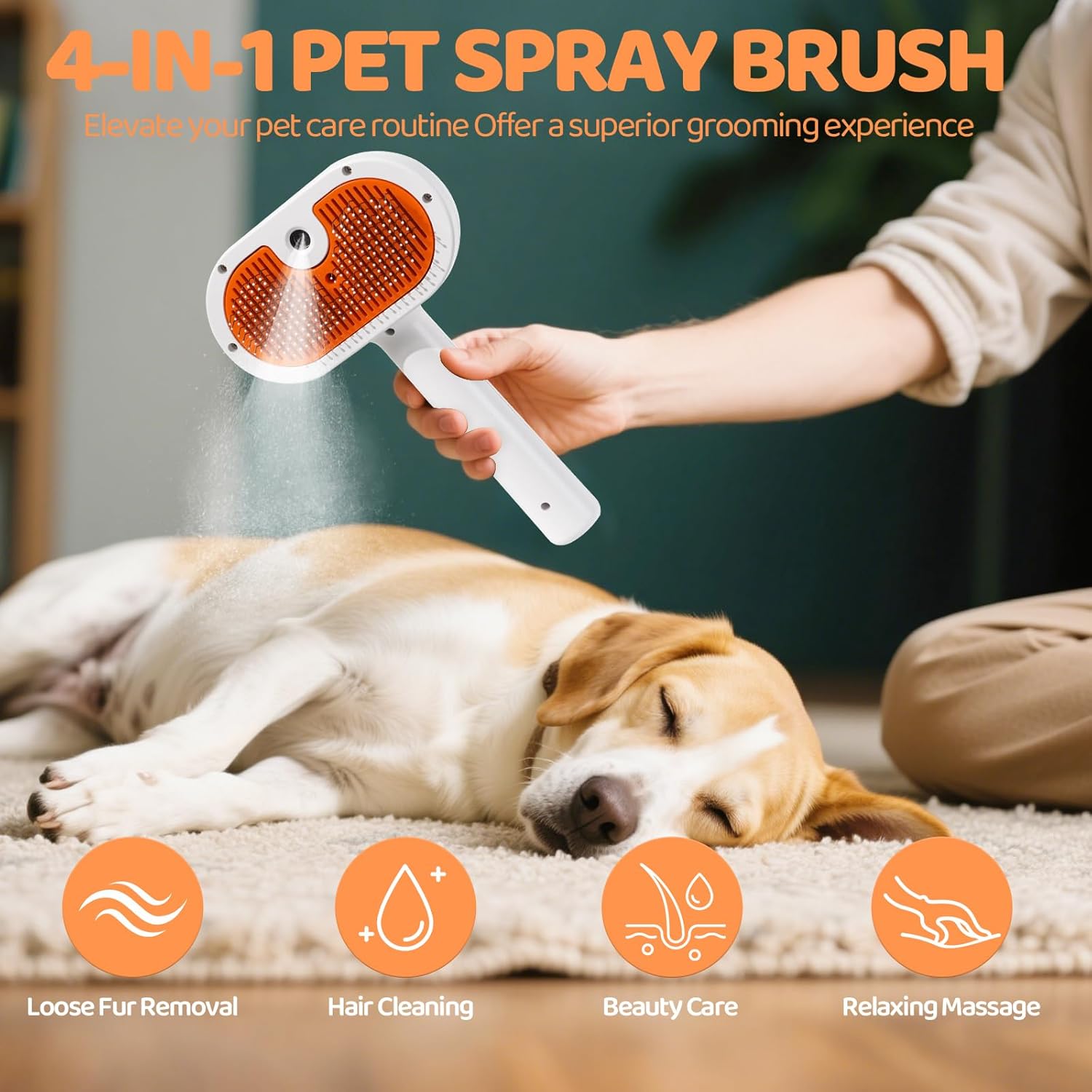 Cat Steam Brush-3 in 1 Pet Brush,Dog Shedding Tool Self Cleaning Pet Spray Depilation Comb with Release Button,Dog Steam Brushs,Cat Grooming Supplies for Long Short Haireds