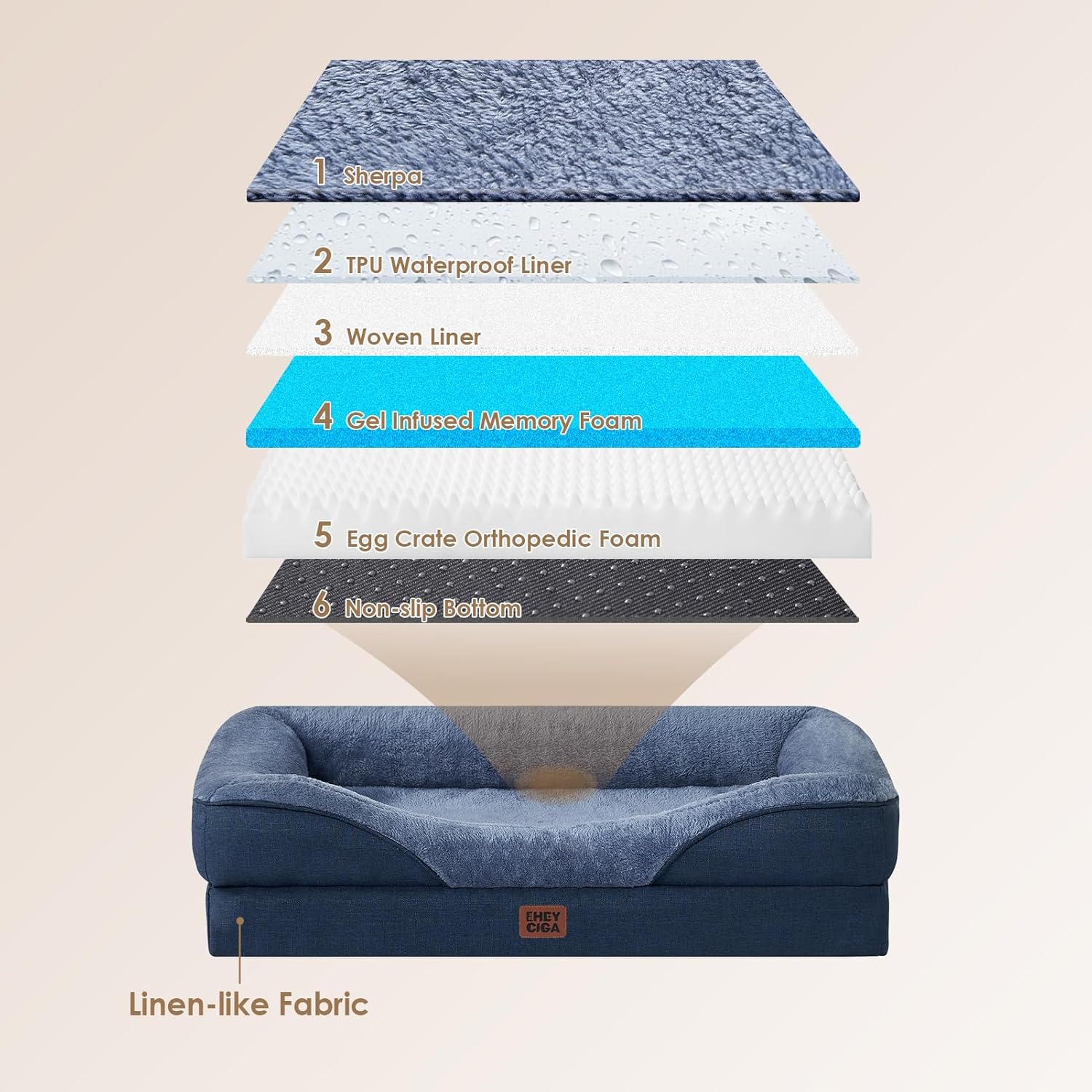 • WATERPROOF PROTECTION: A waterproof layer shields the plush fleece top from the sturdy base fabric, keeping the dog couch dry. Yet, the faux linen sides are not waterproof.