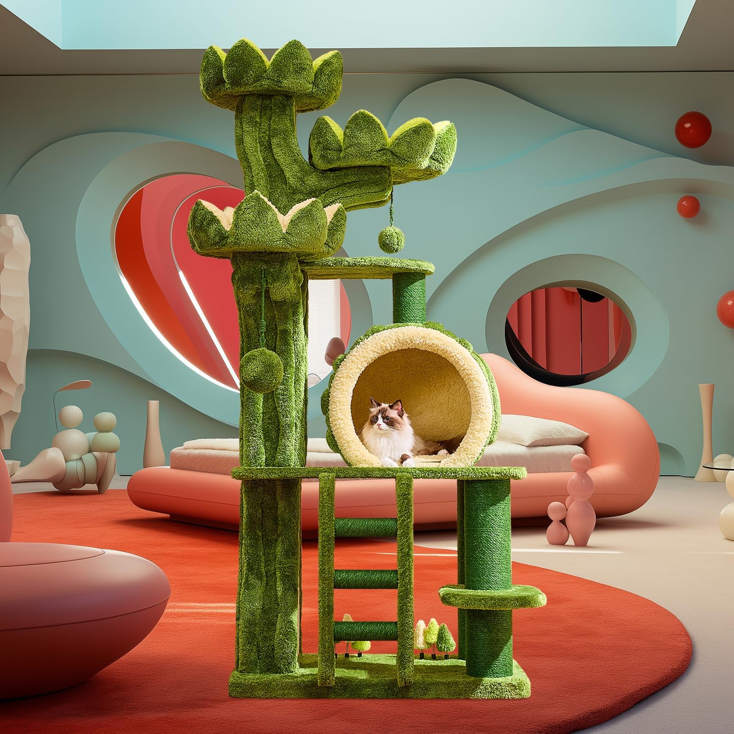 • 【Ideal for Multi-cat Families】The cat tree is an ideal choice for multi-pet households, accommodating 4-7 cats to rest or play together. It features 2 hidden cat food cave, 3 lotus perches, multiple play platforms, funny toy balls and large cat condo with double sided mat, providing ample space for your pets to enjoy climbing.