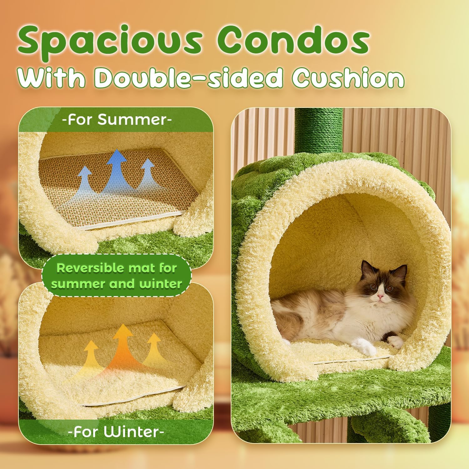 • 【Safe to Play】The 83-inch luxury cat furniture satisfies all your cat's needs, whether it's scratching, resting, playing, jumping, or exploring. The 35.4*23.6 inches sturdy base, with a thickness of 2.4 inches, ensures stability, allowing your cat to jump and play without any wobbling.