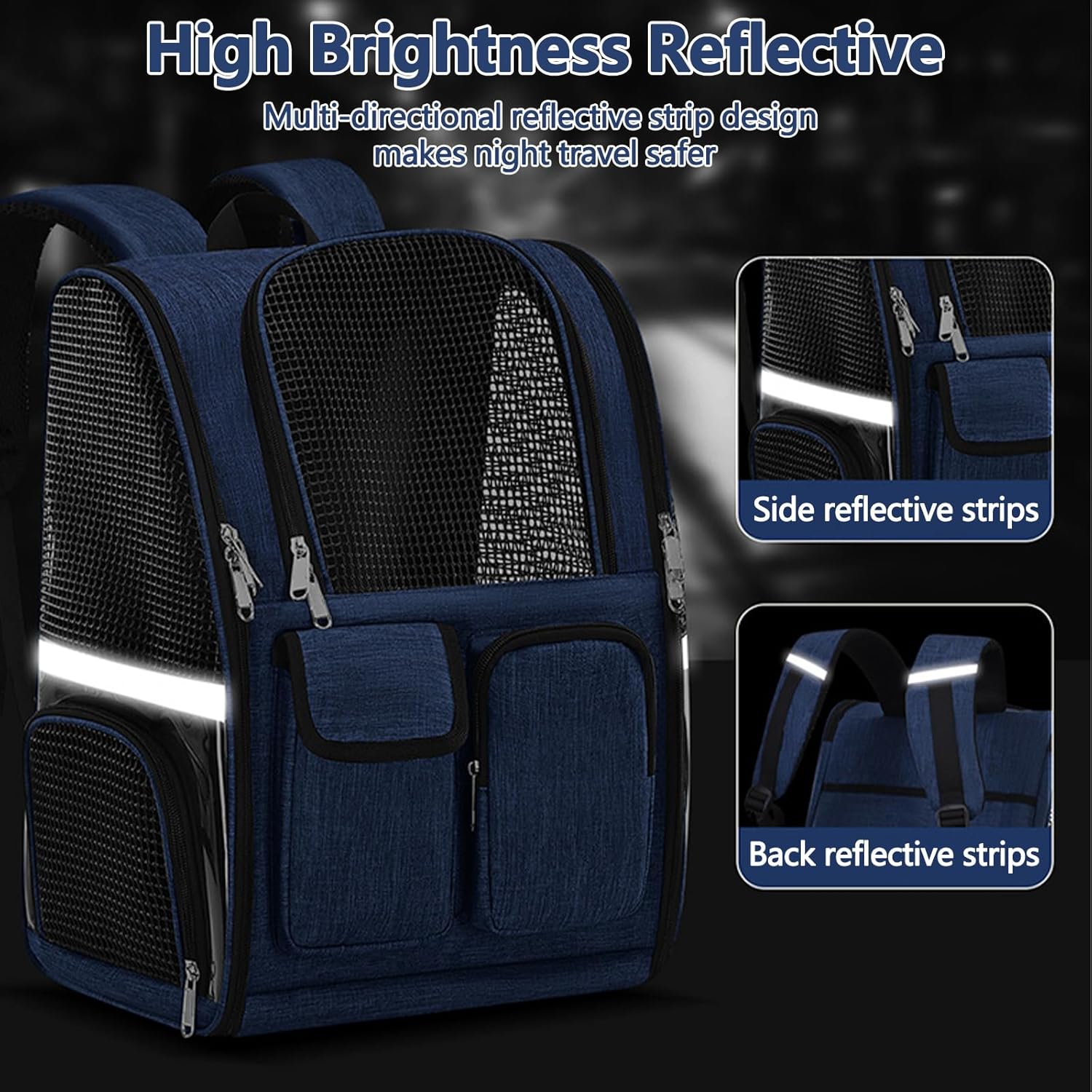 Pet Backpack, Airline Approved Dog Backpack, Cat Bag for Travel Hiking Bike Riding Walking Outdoor, Cat Backpack with Breathable Mesh(Blue)
