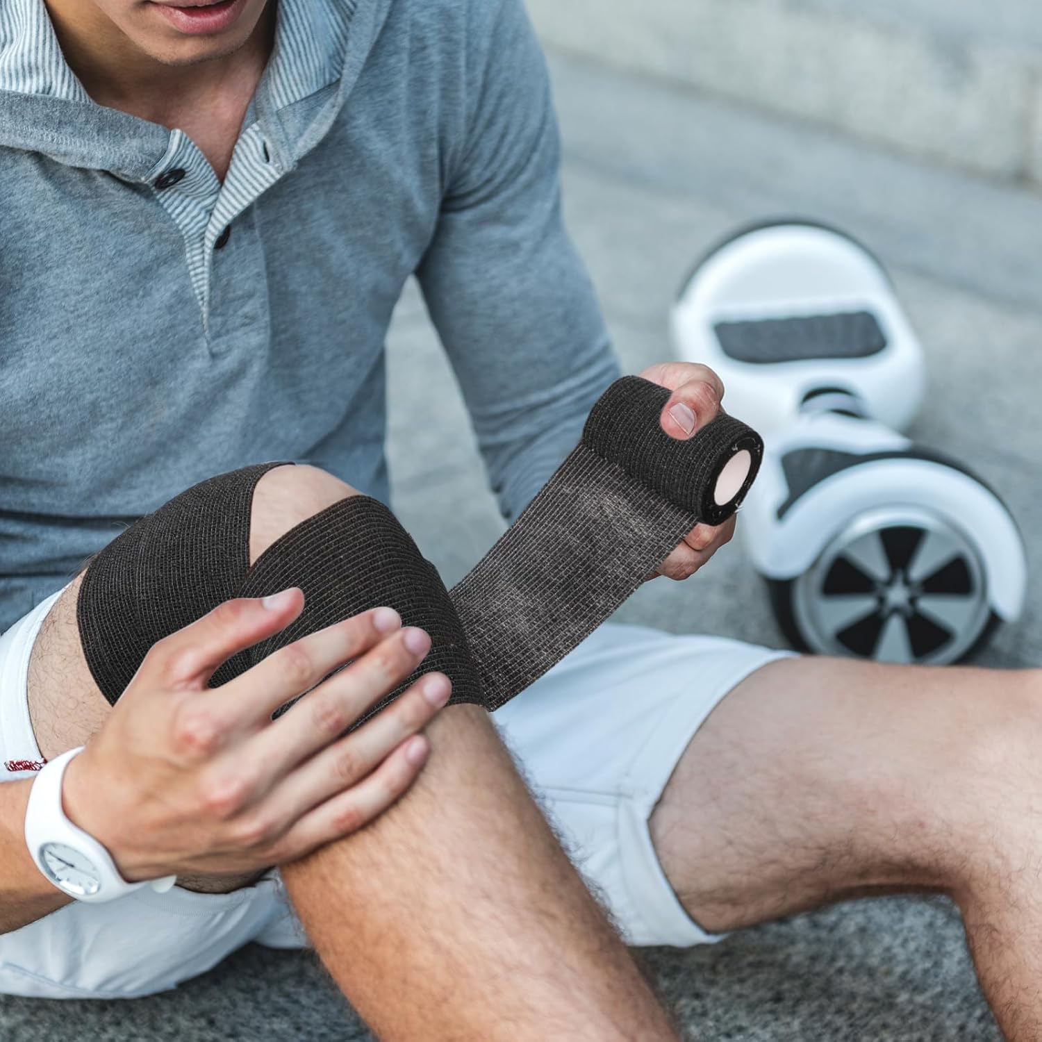 Treela 36 Pcs Self Adherent Bandage 3" X 5 Yard Wrap Breathable Cohesive Bandage Elastic Adhesive Tape for Stretch Athletic Sports Wrist Ankle(Black)
