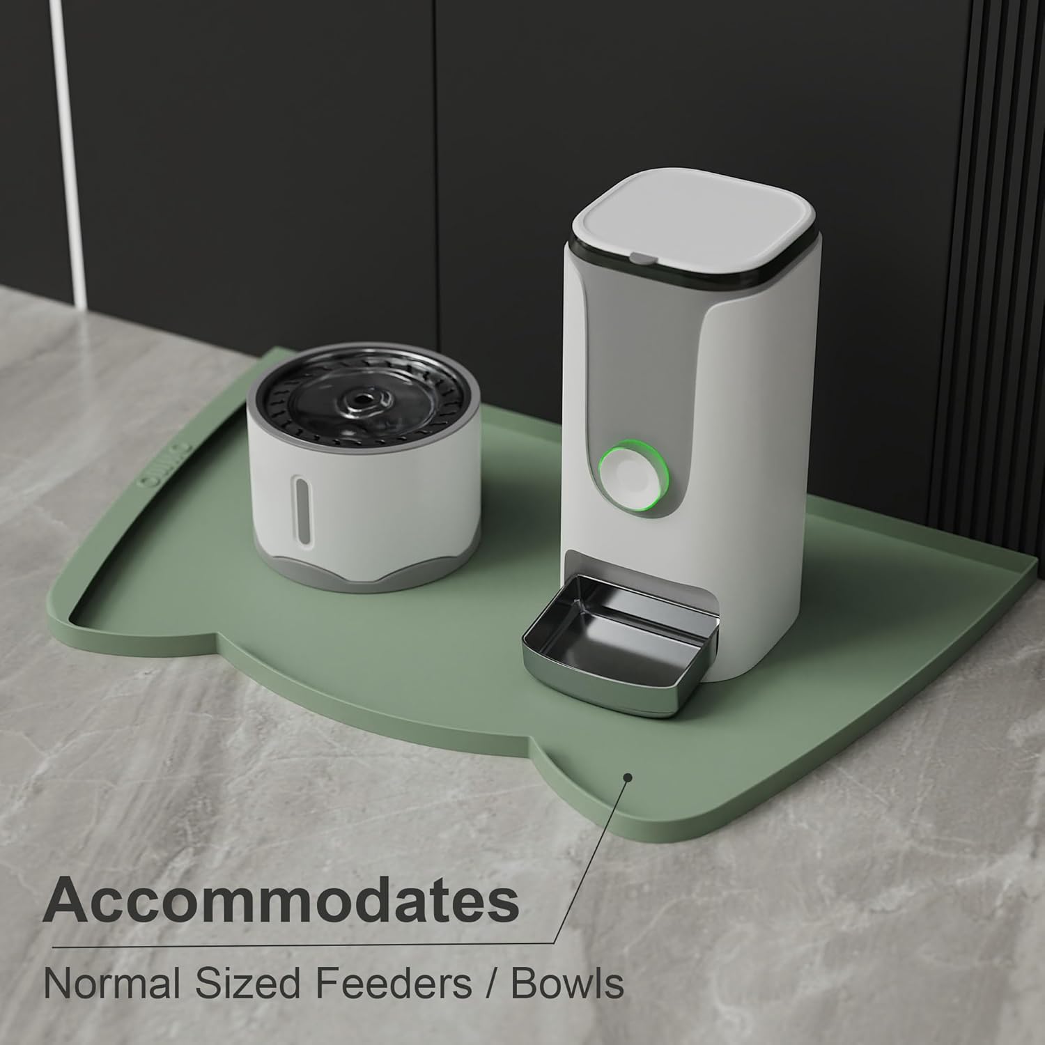 OHMO Dog Food Mat(Sage Green, 24 * 15'') w/Residue Collection Pocket Silicone Pet Feeding Mat for Floor High Edges Anti Spills Waterproof Cat Water Bowl Tray, Easy Clean Placemat