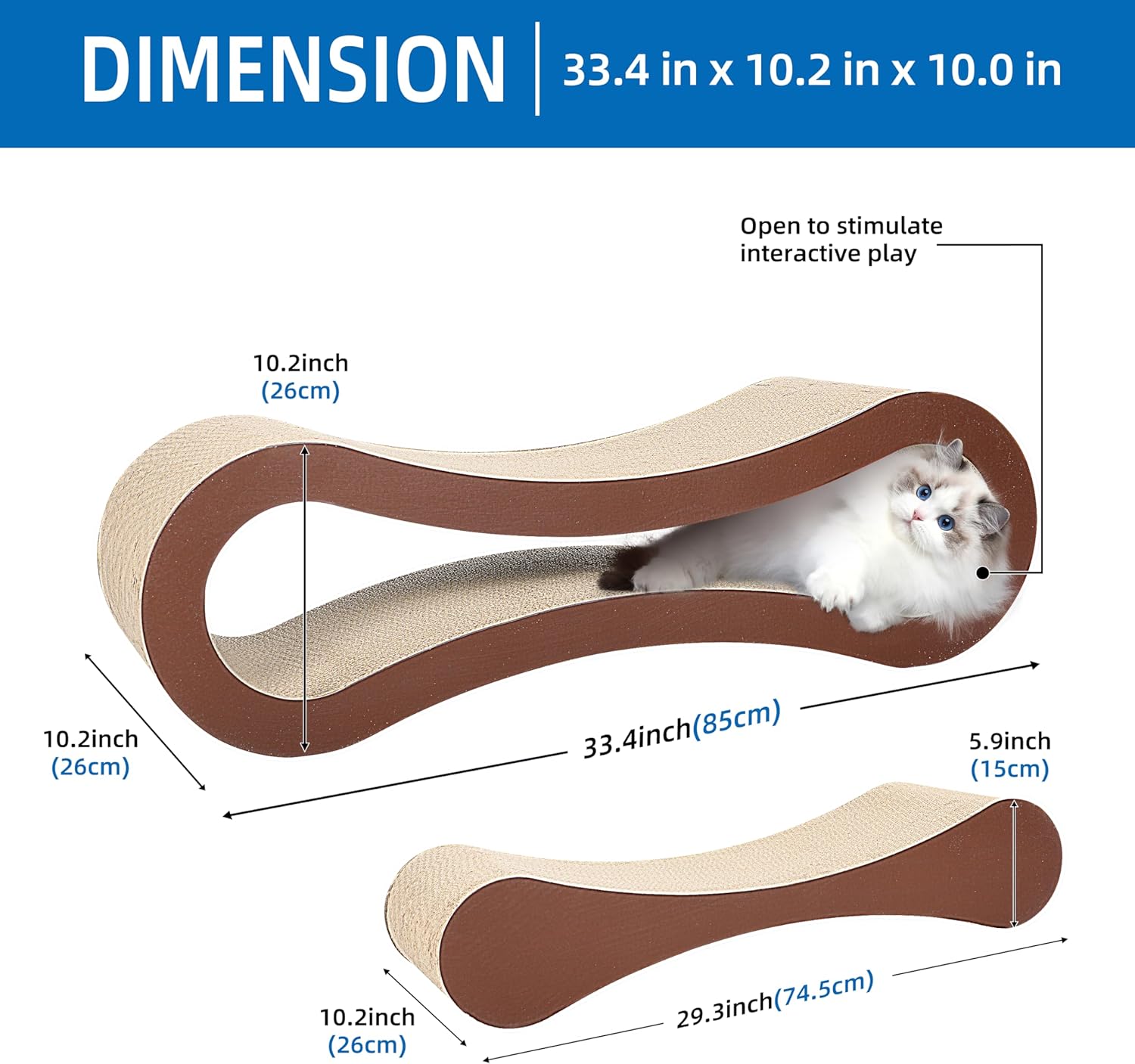 • Unique Infinity Shape: Features a distinctive infinity shape which makes a cozy cat bed or lounger. The shape enhances the visual appeal of the cat scratcher.