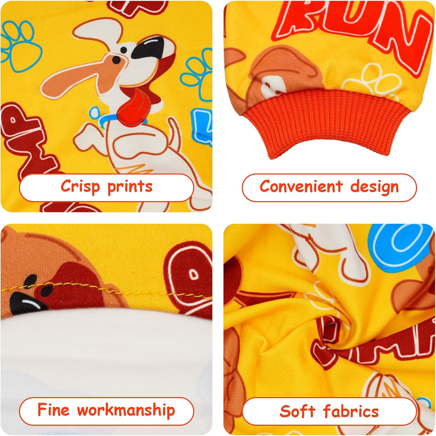 • Dog Pajamas Package:You will received 2PCS dog pajamas in 2 patterns for one package yellow and blue color,The bright color puppy jumpsuits can meet your dog needs for both male and female