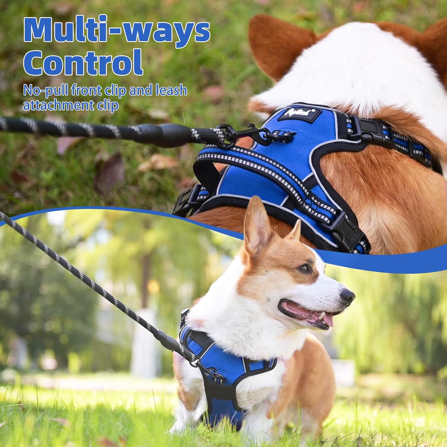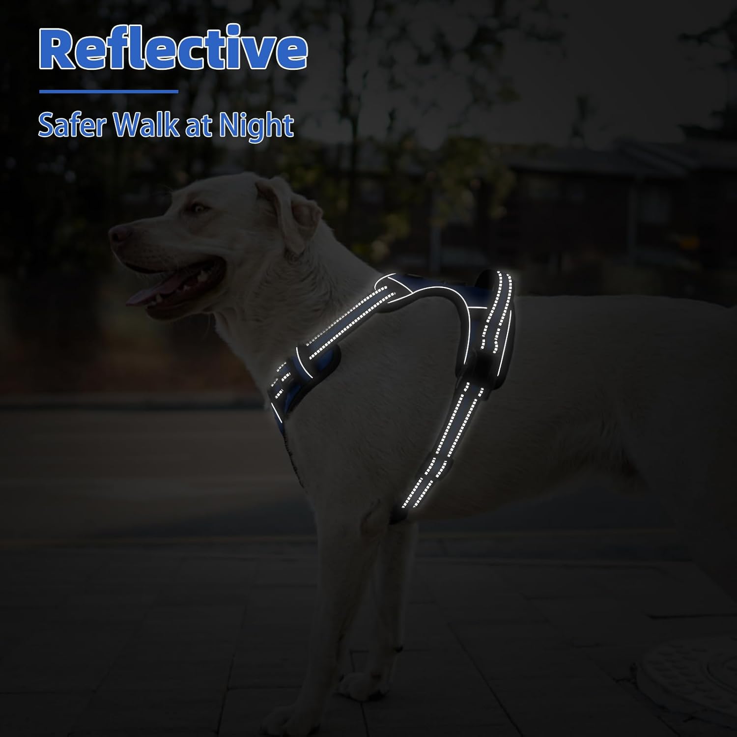 PUPTECK No Pull Dog Harness for Large, Adjustable Reflective Dog Harness with Handle Easy Control, Comfortable Soft Padded Pet Vest Harness for Large Dogs, Blue L