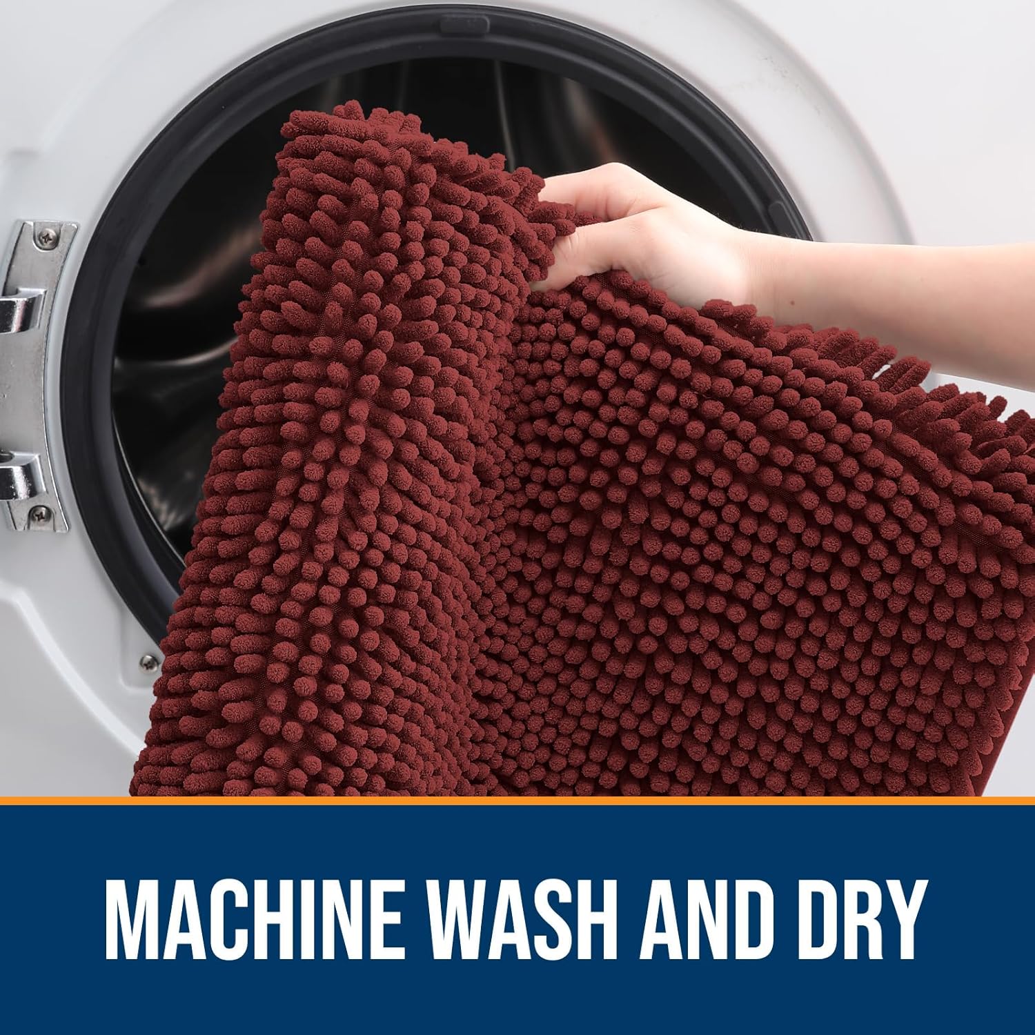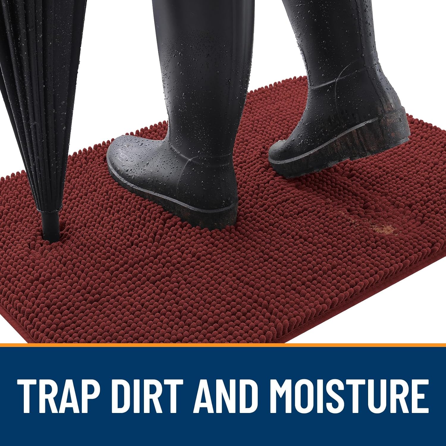 OLANLY Dog Door Mat for Muddy Paws 44x24, Absorbs Moisture and Dirt, Absorbent Non-Slip Washable Doormat, Quick Dry Chenille Mud Mat, Entry Indoor Entryway Carpet for Inside Floor, Caramel Russet