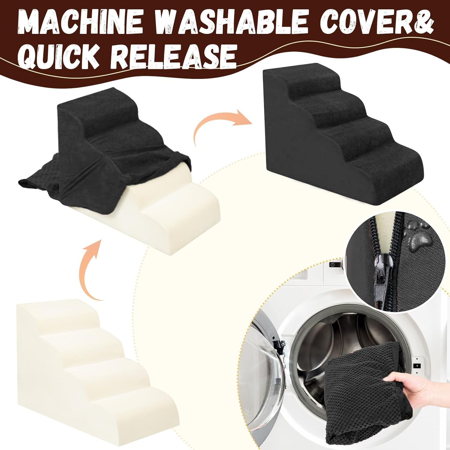 • Easy to Install and Clean: This pet step can be assembled and disassembled through simple steps. It is easy to clean. You can wash the removed cover by machine to keep the pet step clean and tidy