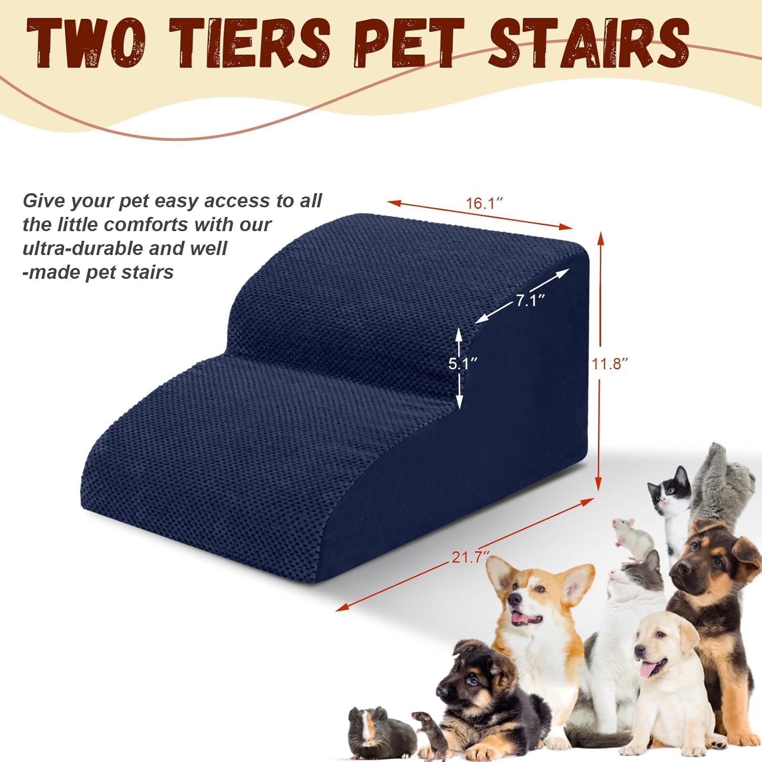 Dog Stairs for Small Dogs - High Density Foam Pet Steps, Extra Wide Dog Ramp with Non-Slip Bottom for High Beds, Couch and Sofa, Best for Dogs Injured, Older Doggy Cats,2 Steps, Navy