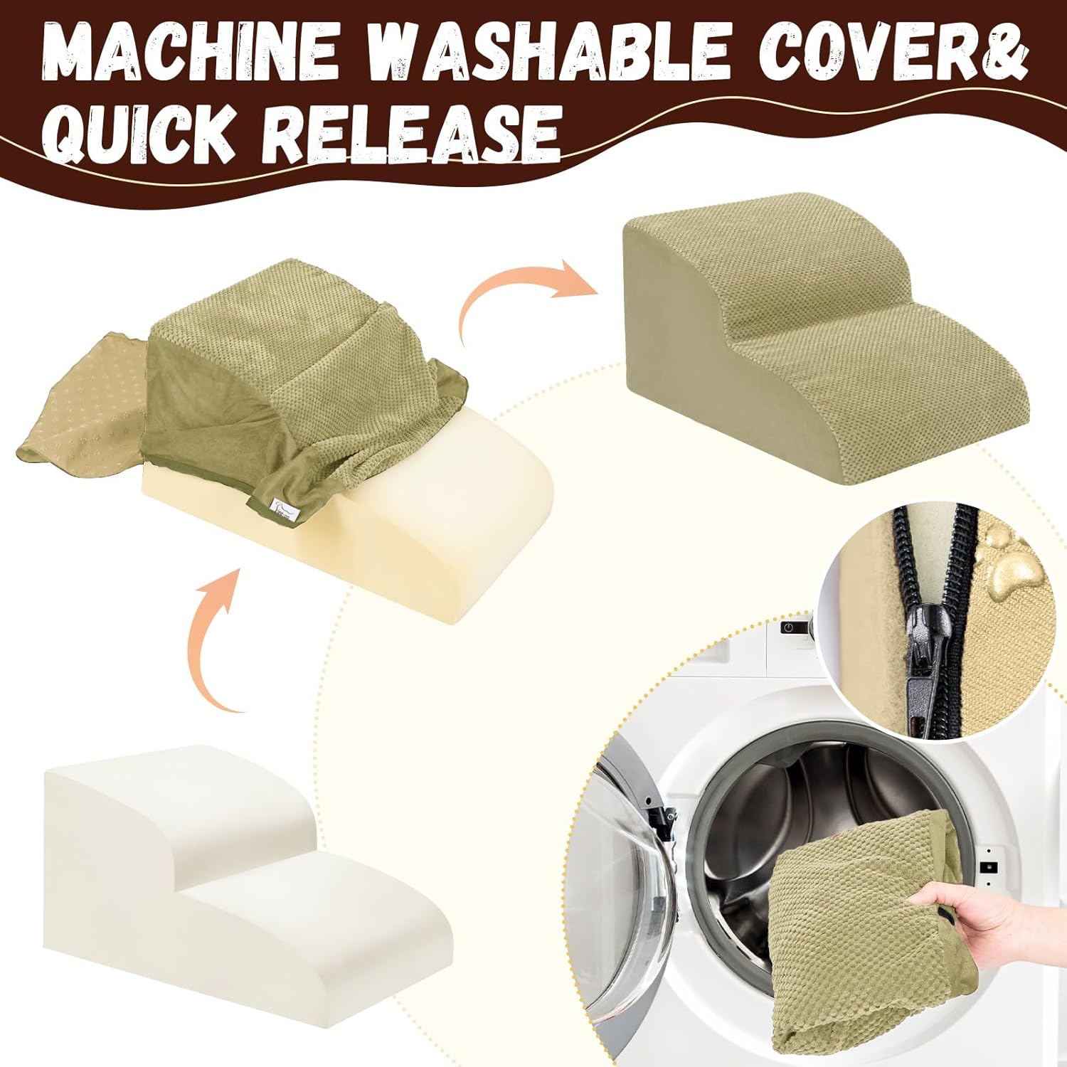 • Double Sided Anti Slip: The dog steps cover is made of corduroy with greater friction than other fabrics, which provides extra grip while in use, the bottom features nonslip rubber dots, preventing pets from sliding while climbing, providing pets with double safety protection