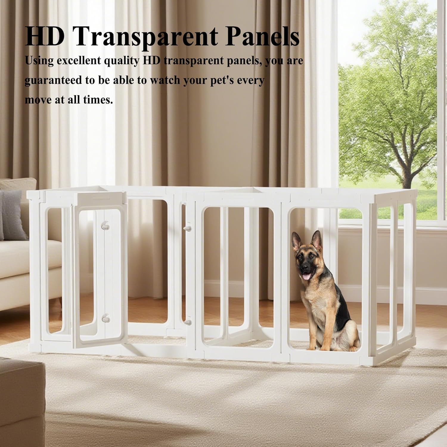 • 【MODERN & BEAUTIFUL DESIGN】- Our dog playpen breaks the traditional cage fence design, made of bright and transparent material, like a bright pet home, more beautiful, easy to clean, so that your pet is no longer anxious, no longer feel imprisoned, no longer worry about your pet getting stuck in the playpen, and it is also convenient for you to observe your beloved pets.