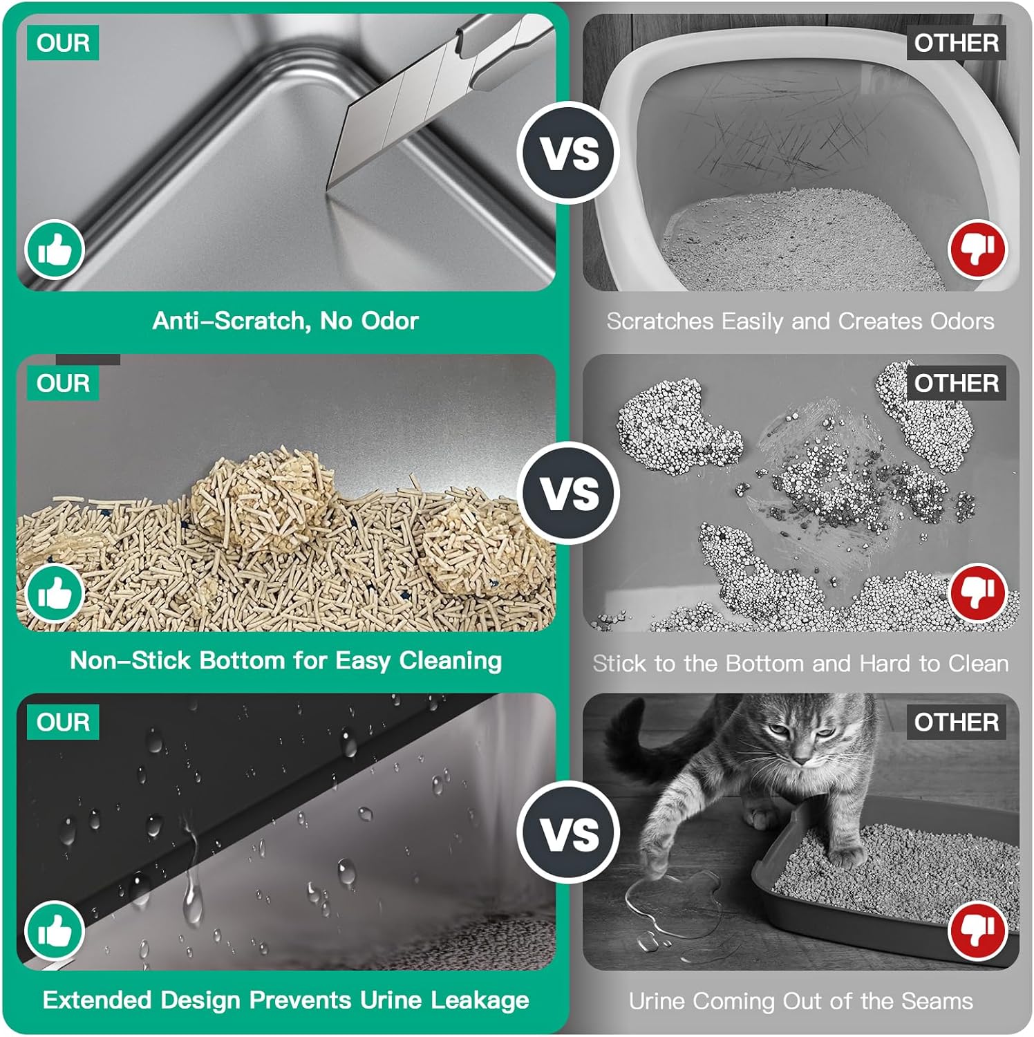 • 【XXL Stainless Steel Litter Box】extra large cat litter box with high sides is much larger than other xxl litter boxes for big cats, perfect for all sizes of large cats, kittens and old cats, multi-cat households