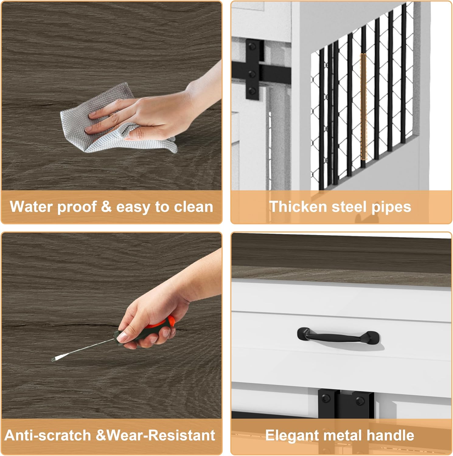 • Easy Assembly and Ample Storage: With three spacious drawers, this dog crate furniture keeps all your pet essentials organized and within reach. Each crate comes with clear instructions for effortless assembly, so you’ll have your stylish new dog cage set up in no time!