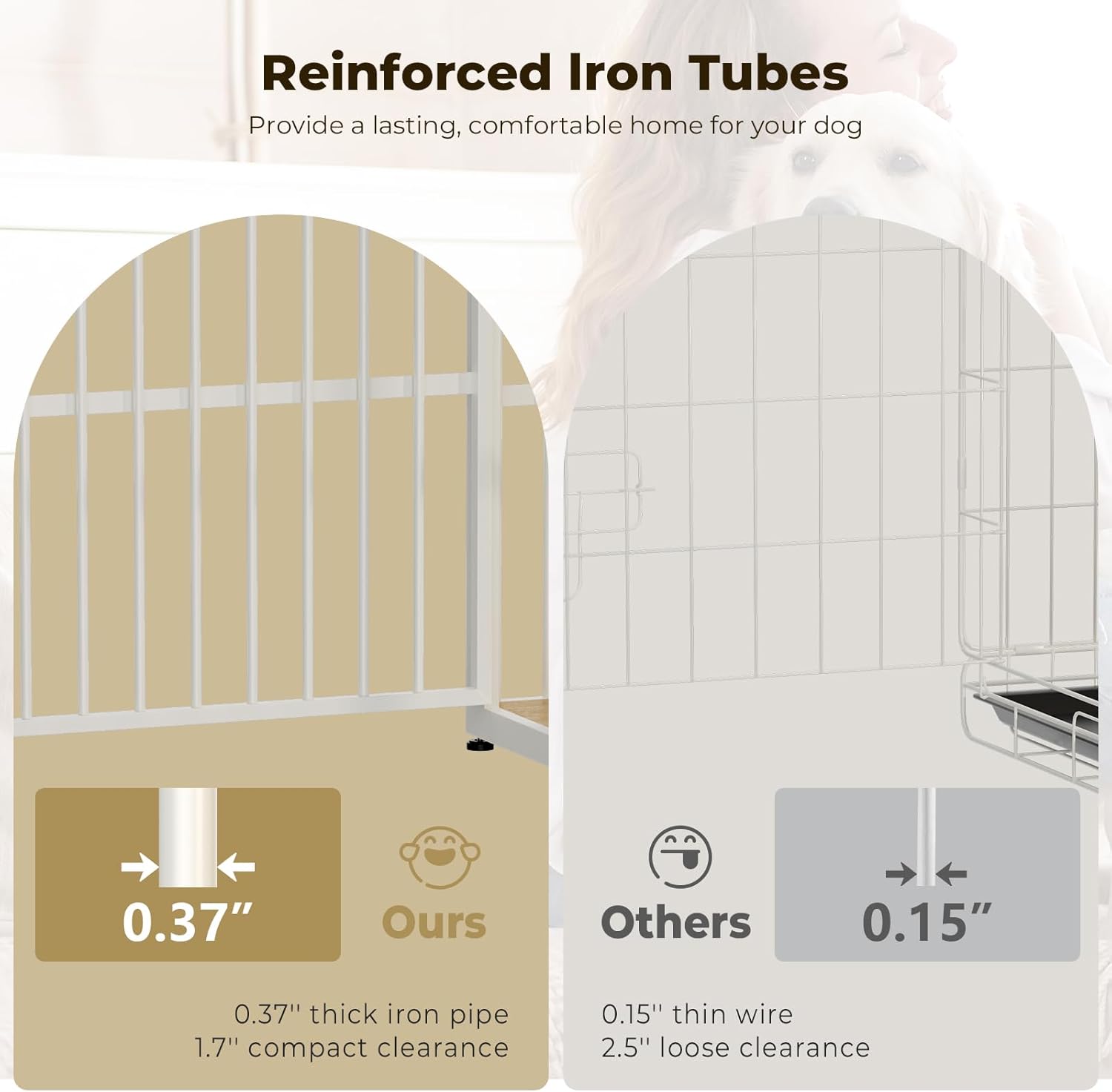 • 【Sturdy and Chew-Resistant】This dog crate furniture is made of premium particle board and iron pipe, which is stronger and more chewy; It will accompany your dog throughout the growing stages; It's an ideal gift for your dog