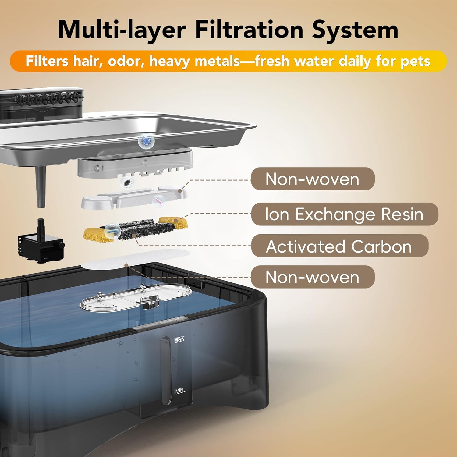 • Compatibility: This filter is only compatible with 8.5L/2.25Gal 4 Heights Adjustable Pet Fountain