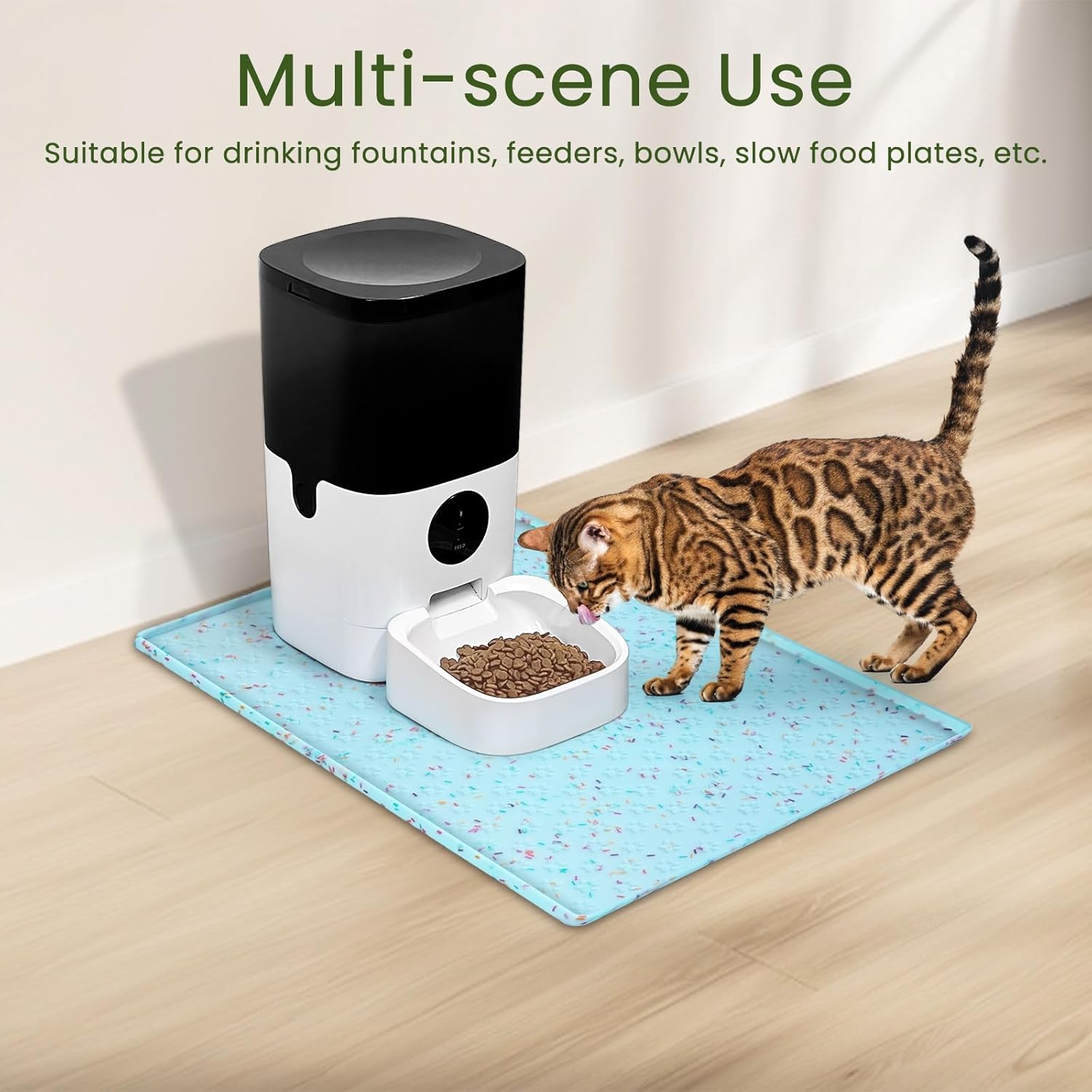 • Versatile Usage: This extra-large dog feeder mat accommodates various types of bowls and pet supplies - mats under dog food and water bowls, cat fountain, feeder stations and litter boxes for messy proof. Pet placemats are suitable for all breeds of cats, dogs, puppies and other animals.