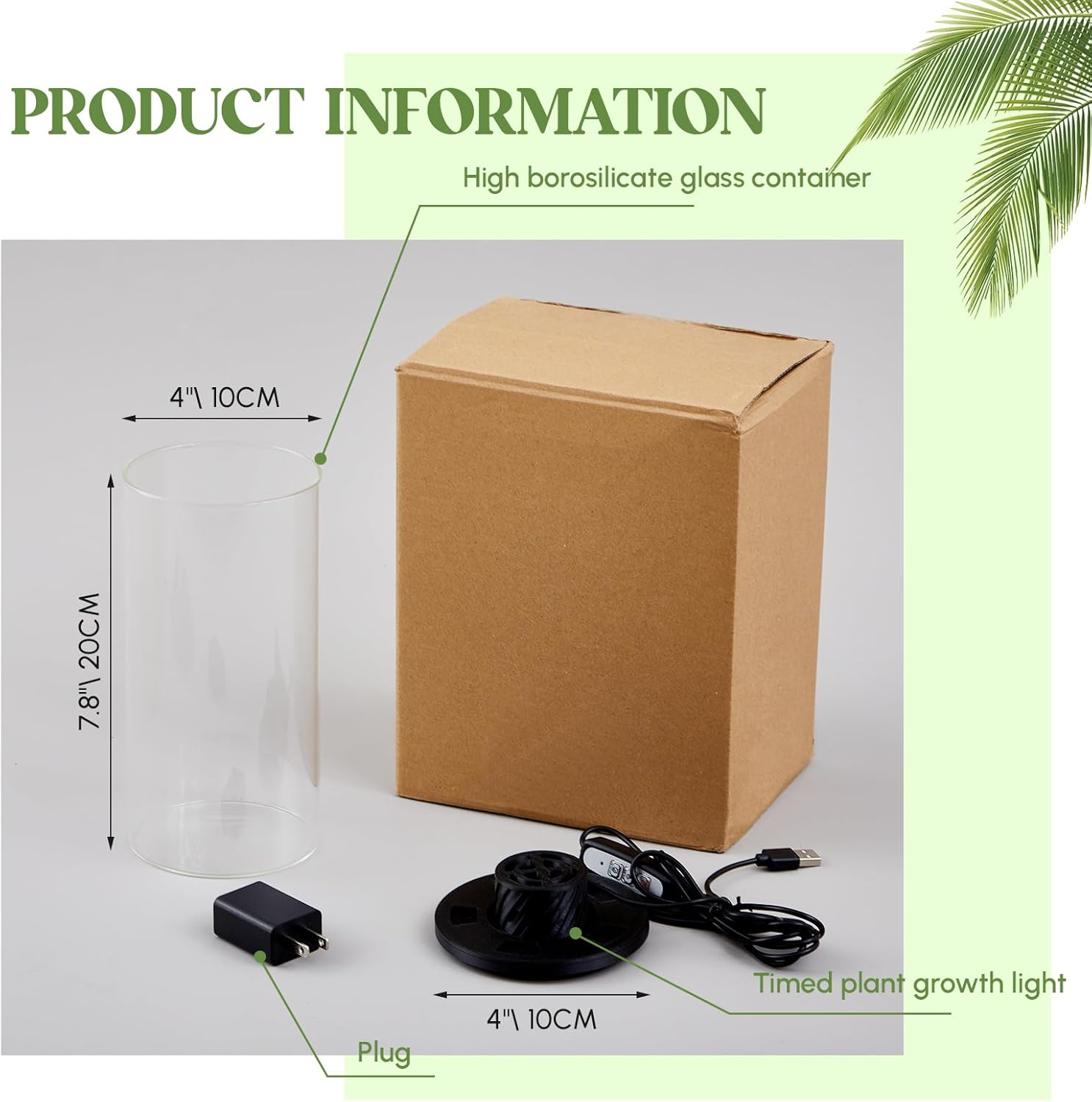 • What You Will Get: 1 terrarium glass, about 7.8 inches high; Aquarium light, about 4 inches in diameter; 1 adapter 5V2A, US two-pin plug