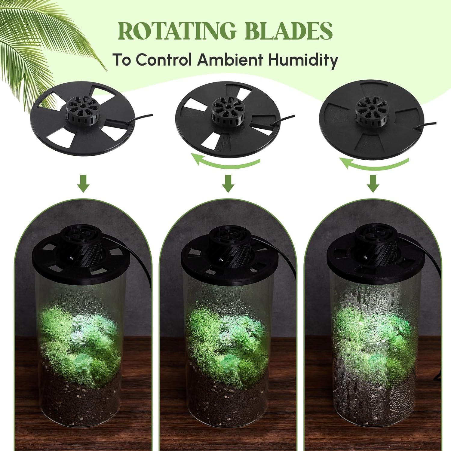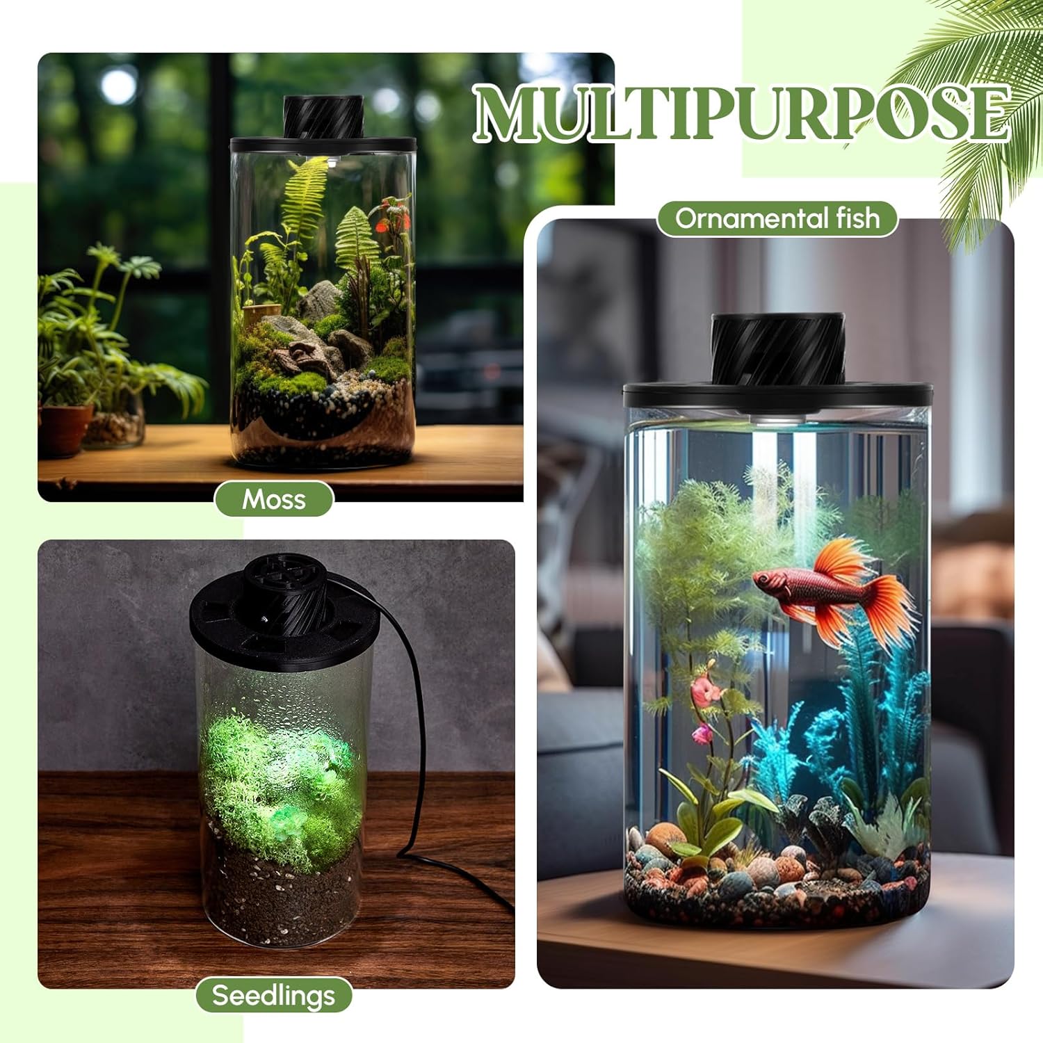 • Efficient and Adjustable Lighting: our 3W LED light is suitable for small plants and mini aquariums; You can easily change between strong and weak lighting modes, providing the right amount of light for your succulents or mosses; The adjustable lighting and rotating lamp base allow you to control the ventilation and humidity inside the bottle, which is especially useful for plants that require high humidity
