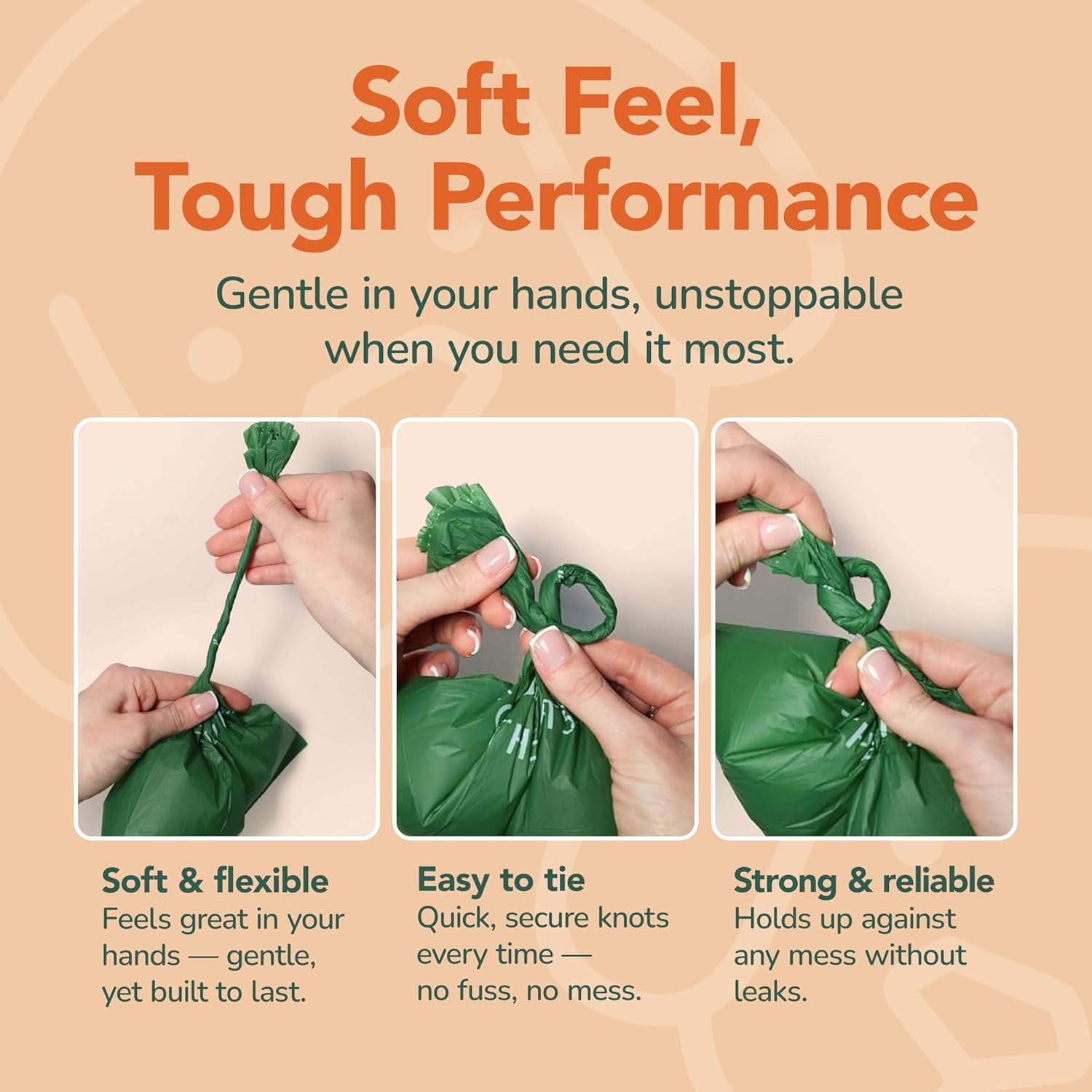 • Eco-Friendly dog bags for pet waste – Made from a compostable corn starch blend, our doggy waste bags help reduce your pup’s carbon pawprint. Perfect alternative for eco-conscious pet parents to traditional plastic poopy bags for dogs